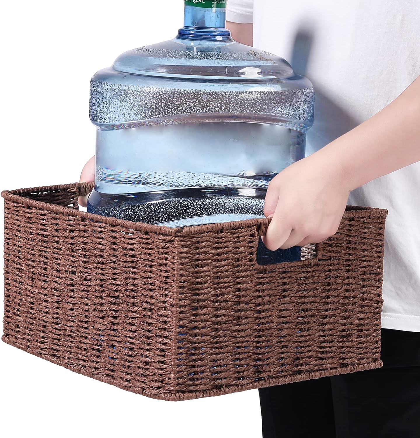 • Durable and Versatile: these pantry baskets are made of a metal wire frame and handwoven twisted paper rope, hand-woven by skilled workers, clean up and organize your home with these rattan-style plastic baskets.