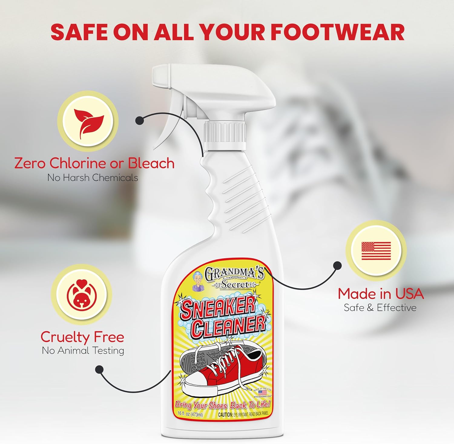 Grandma's Secret Sneaker Cleaner - Shoe Cleaner for Rubber, Canvas and Leather - Stain Remover Spray Removes Dirt, Grime and Grass - Sneakers Cleaner for Outdoor Shoes, Slippers and Moccasins ??16 oz