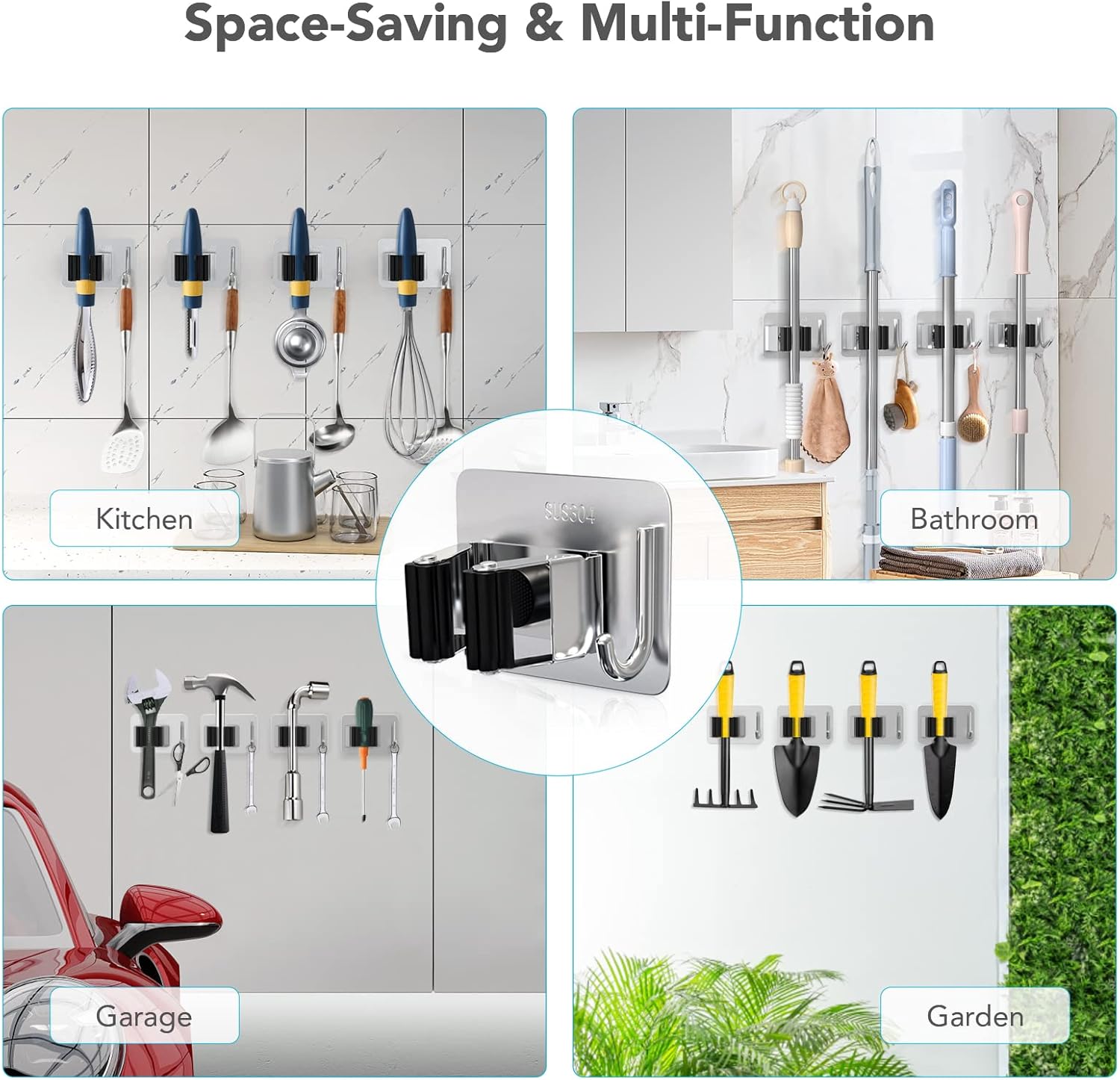 • ✔ Multi-purpose Storage: Self adhesive mop organizer is helpful to organize the mop, broom, umbrella, brush, shovel and other tools, keeping your home clean. The hooks can hang a variety of daily items, improving storage space