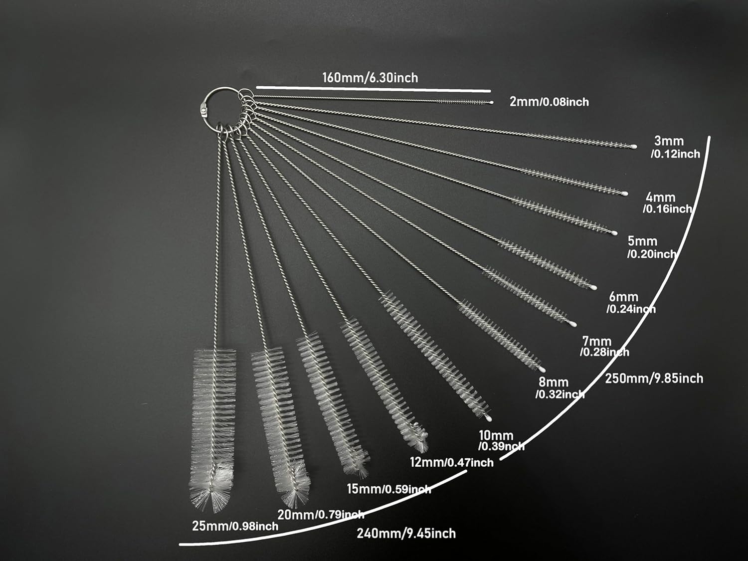 12 PCS Straw Cleaner Brush kit with 2mm-25mm /6.5-10 INCH for Tube and Pipe.Tumbler, Sippy Cup, Bottle with Straw,Hummingbird feeders and Drinking Straw, Brushes for Cleaning Tanks