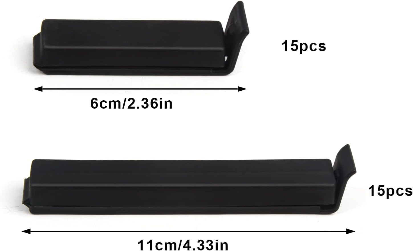 • 【Value Pack】- 30 pack durable black bag sealing clips with 2 sizes (2.4" x 15, 4.34" x 15). Suitable for sealing bags of different sizes, Make your storage easier.