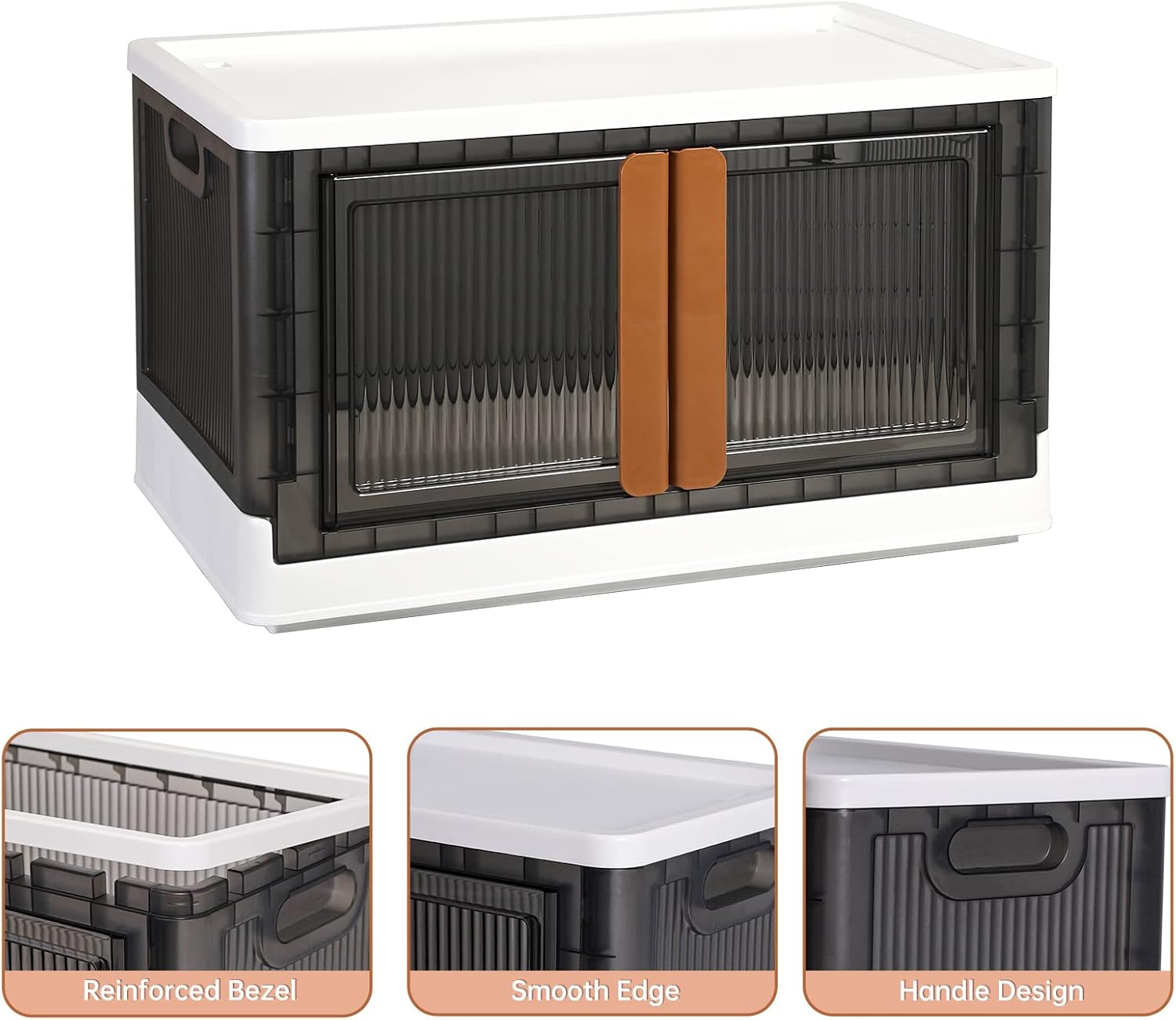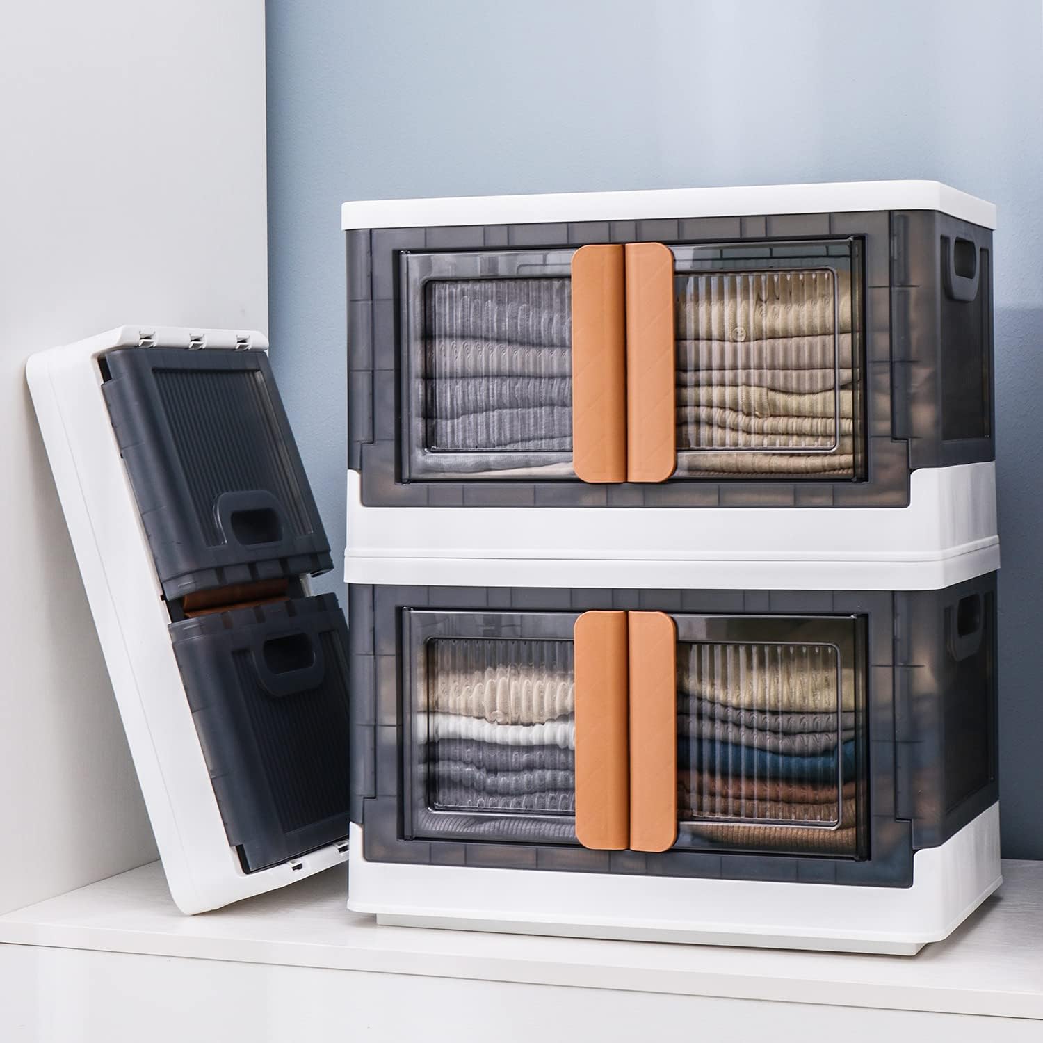 HAIXIN Storage Bins with Lids, Collapsible and Stackable Storage Bins, Plastic Closet Organizer, 8.4 Gal Folding Storage Box, Containers for Organizing with Door, 1 Pack