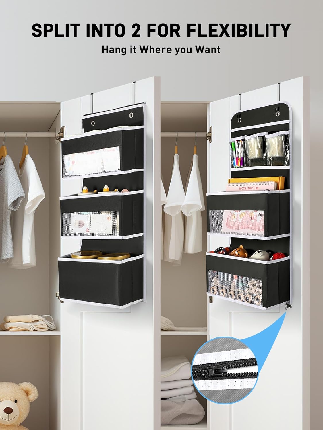 Yecaye 6-Tier Over The Door Storage Organizer, Flexible 1 Split into 2 Swing-Proof Hanging Bathroom Organizer, Bedroom Organizers and Storage for Newborn Baby Essentials, Black