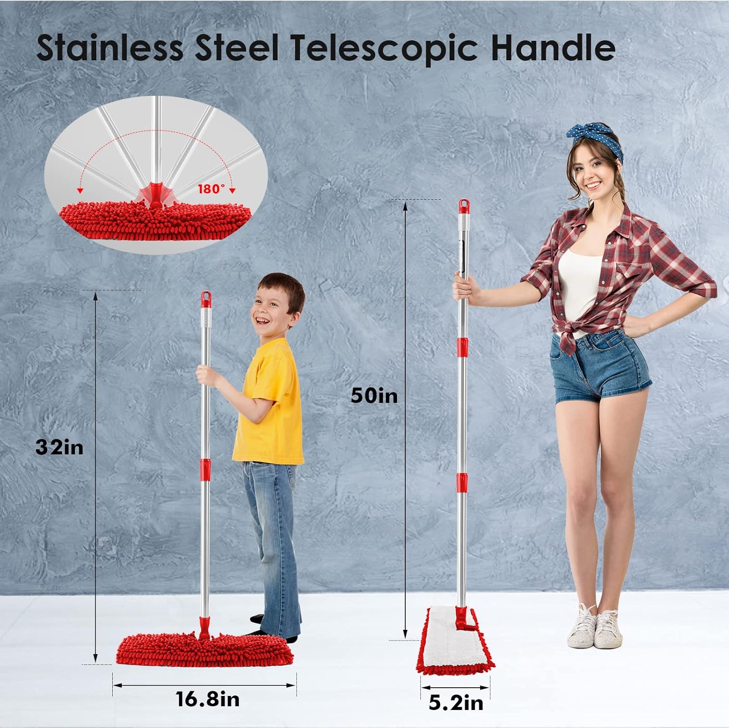 • Expandable Telescopic Handle: This mop has stainless steel telescopic handle, the longest length can reach to 52". The telescopic handle can be adjusted according to your purpose. Stretching to the shortest length of 33" is very suitable for children's height.