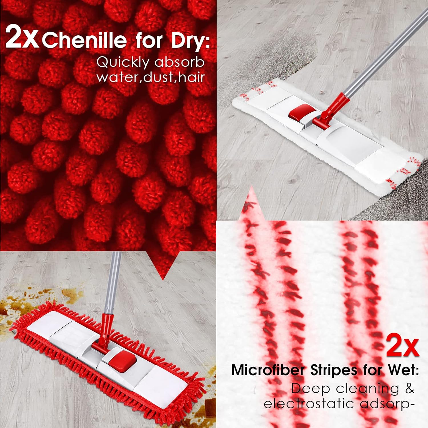 • Easy Cleaning: The size of microfiber mop head is 16.5x3.7”, it can efficiently remove paper scraps, entangled hair, dirt and dust. This dust mop is suitable for cleaning kinds of floors like hardwood, tile, laminate, vinyl, wood, walls and more.