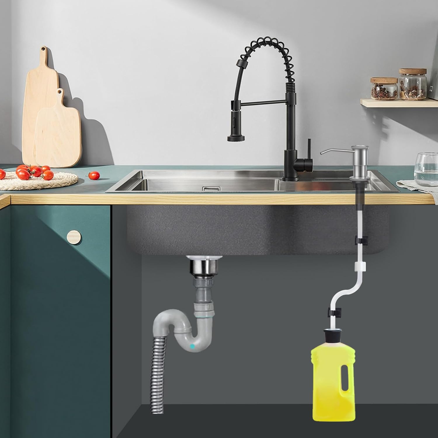 • HIGH QUALITY: High-Grade silicone tube is soft and elastic, not easy to bend under the countertop, the check valve make the soap prime in the tube.