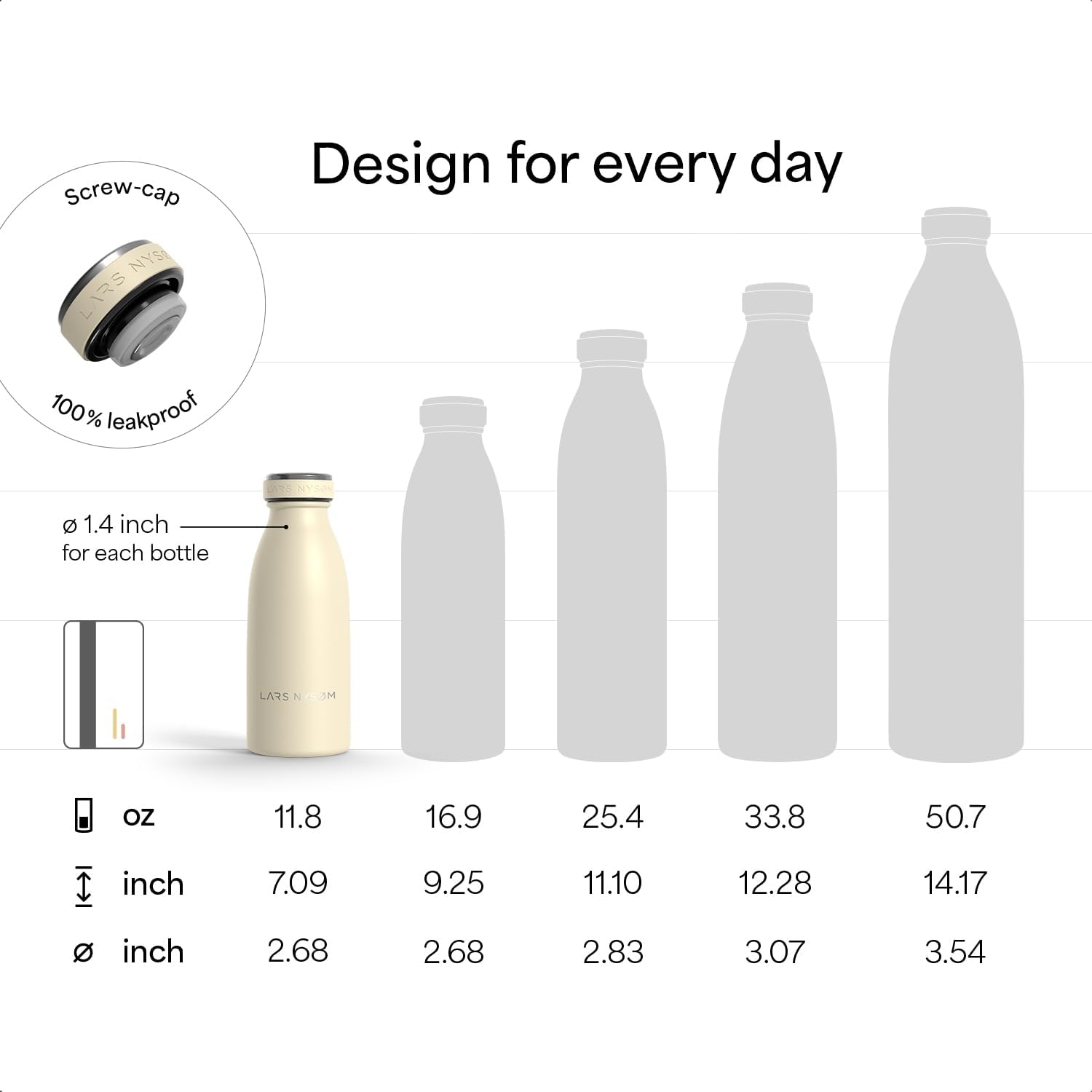 LARS NYSØM Stainless Steel Insulated Water Bottle 12oz 17oz 25oz 34oz 51oz | Insulated Thermo Flask for Hot and Cold Beverages | Leakproof Drinking Bottle (Almond Beige, 11.9oz)