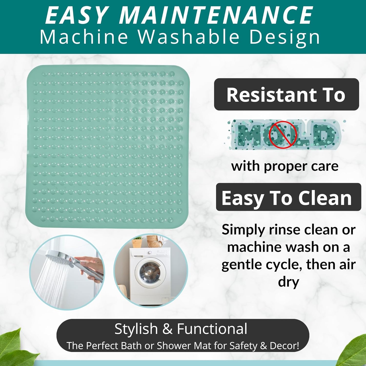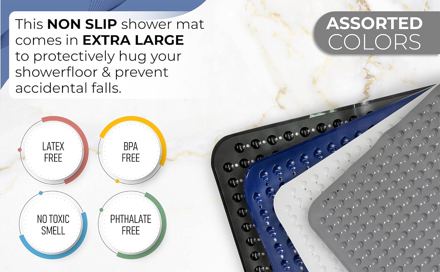 • NON-SLIP MAT enjoy 360-degree protection in your shower; prevent falls with an extra large Square bathroom shower bath mat for larger shower stalls with pliable suction cups for secure sticking capacity to help securely hold the shower mat to shower stall floors for safe anti-slip protection