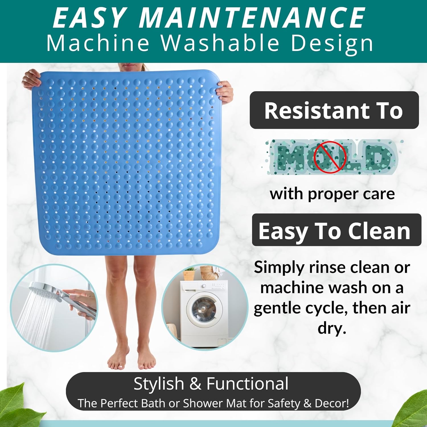 • NON-SLIP MAT enjoy 360-degree protection in your shower; prevent falls with an extra large Square bathroom shower bath mat for larger shower stalls with pliable suction cups for secure sticking capacity to help securely hold the shower mat to shower stall floors for safe anti-slip protection