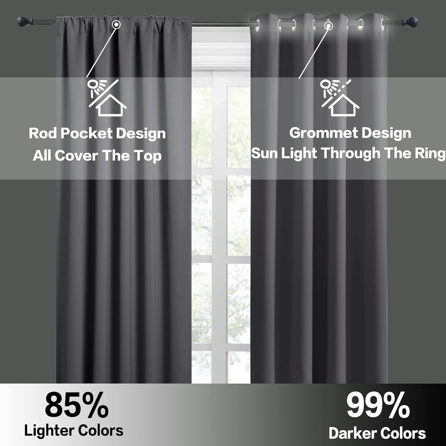 • LIGHT BLOCKING - Curtains block 85-95% sunlight and UV rays (Dark color works better) for maximum privacy and undisturbed sleep. Thermal property of the blackout curtains ensure that the room temperature is regulated. Protect your indoor furniture from directly exposing to the sun.