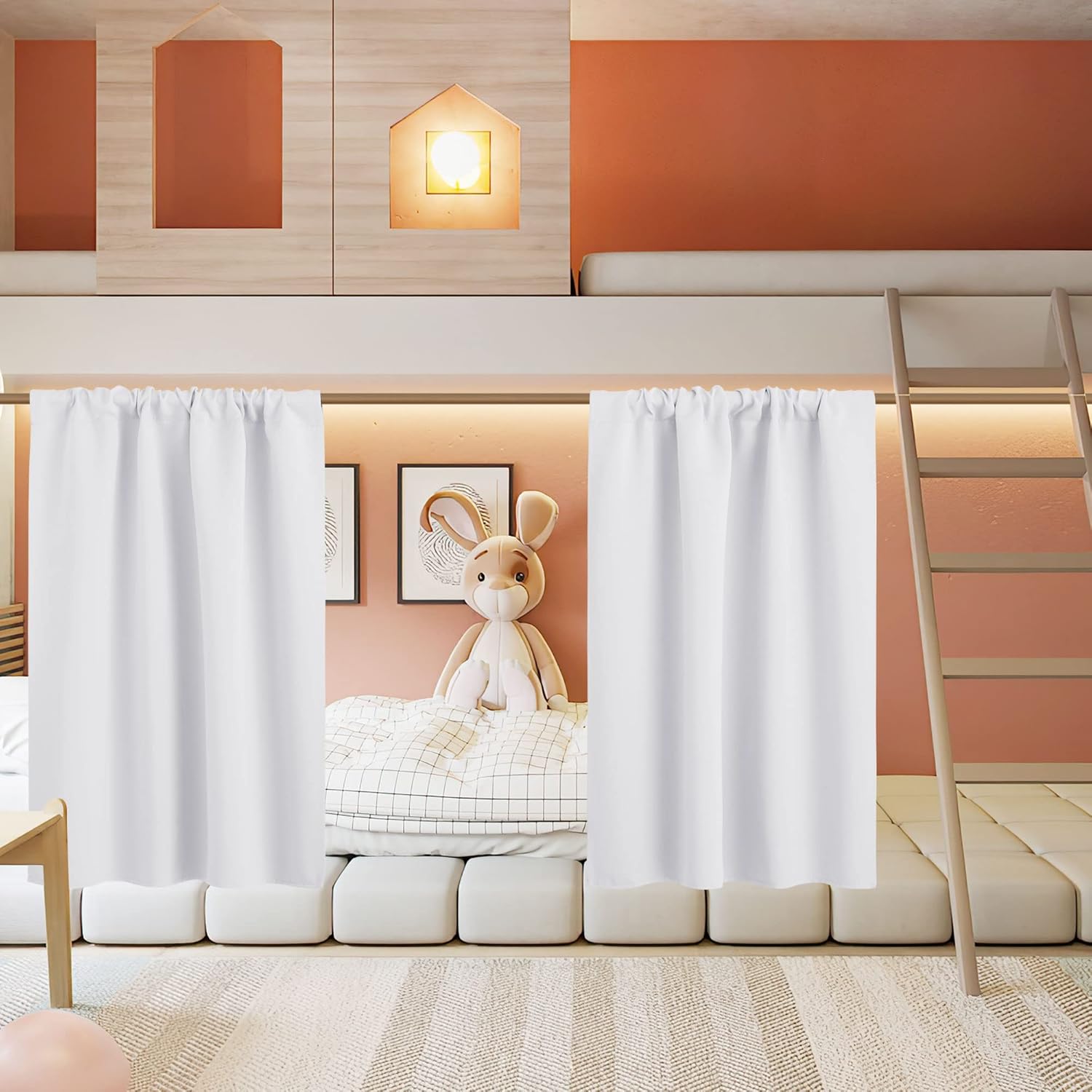 RYB HOME Small Curtains for Kitchen Window - Blackout Privacy Portable Curtain Set for Bedroom Office Bathroom Basement Garage Storage Enclosure RV Bunk, W 34 x L 30 inch, Pure White, 2 Pcs