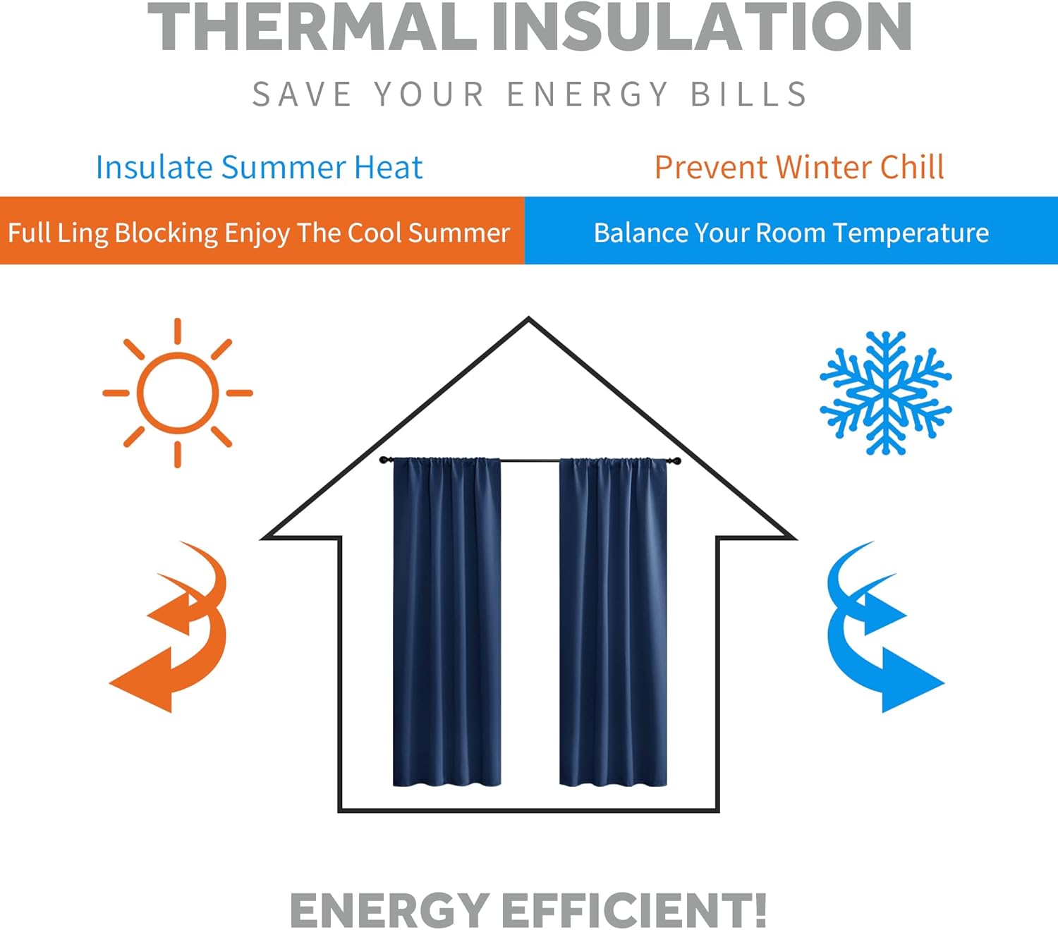 • LIGHT BLOCKING - Curtains block 85-95% sunlight and UV rays (Dark color works better) for maximum privacy and undisturbed sleep. Thermal property of the blackout curtains ensure that the room temperature is regulated. Protect your indoor furniture from directly exposing to the sun.