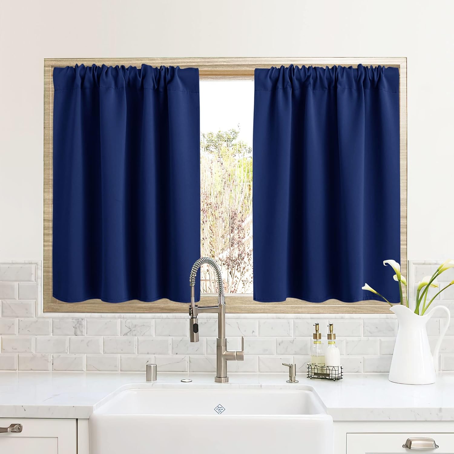 RYB HOME RV Camper Door Window Curtains -Blackout Privacy Curtains & Drapes for Bathroom Bedroom Kitchen Portable Travel Trailer Small Window Decor, W 34 x L 24, Marine Blue, 2 Panels