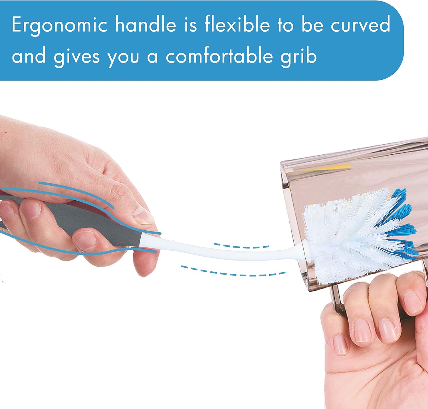 • CLEAN CORNERS - Due to the shape of the brush, it is much easier to reach the bottom of the bottle and clean thicker dirt.