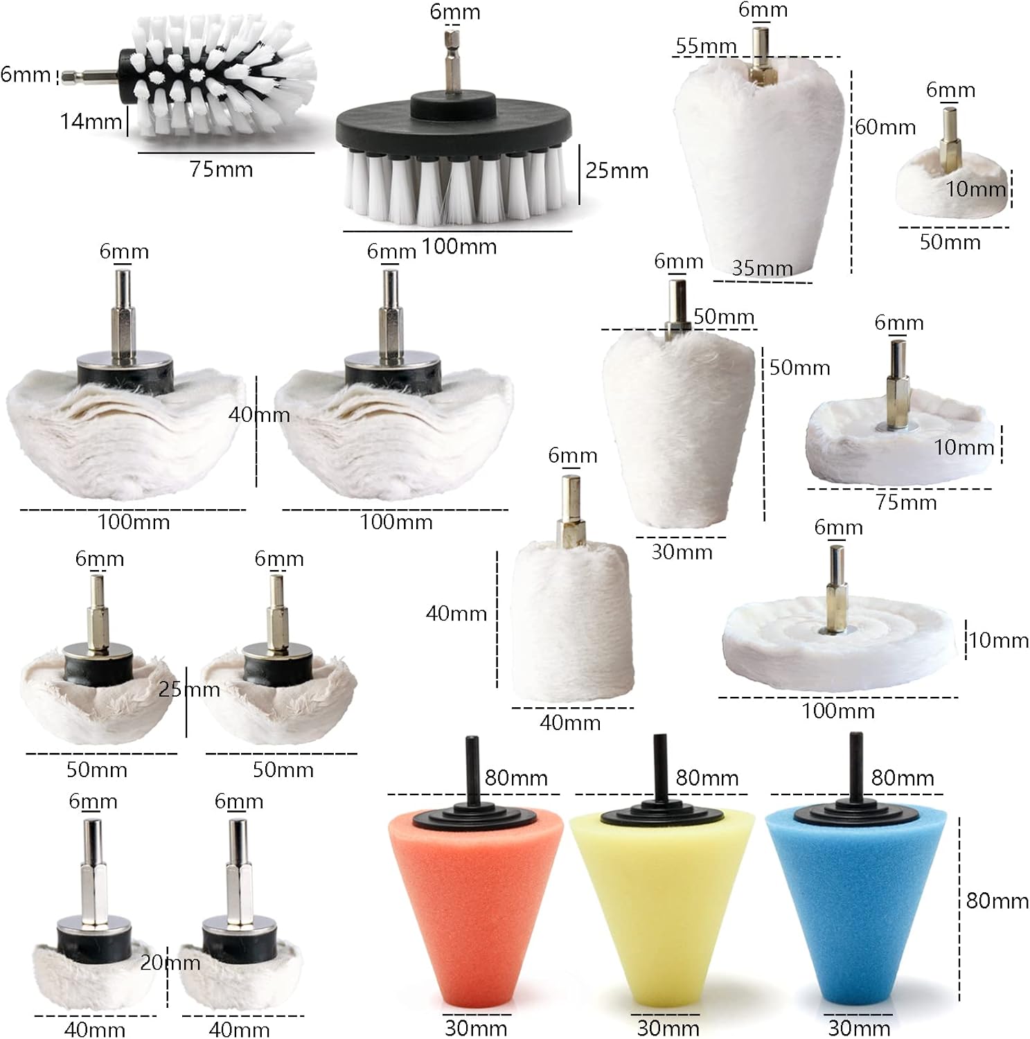 • PERFECT FIT:Reusable and effectively restore the surface gloss, with the use of polishing paste leaves an invisible and persistent protective film with a mirror effect.apply to automotive glass ,car buffer wheel ,exhaust pipe, car polishing wheel. This drill buffing kit can be used for metal aluminum stainless steel chrome wood plastic ceramic glass woods etc.