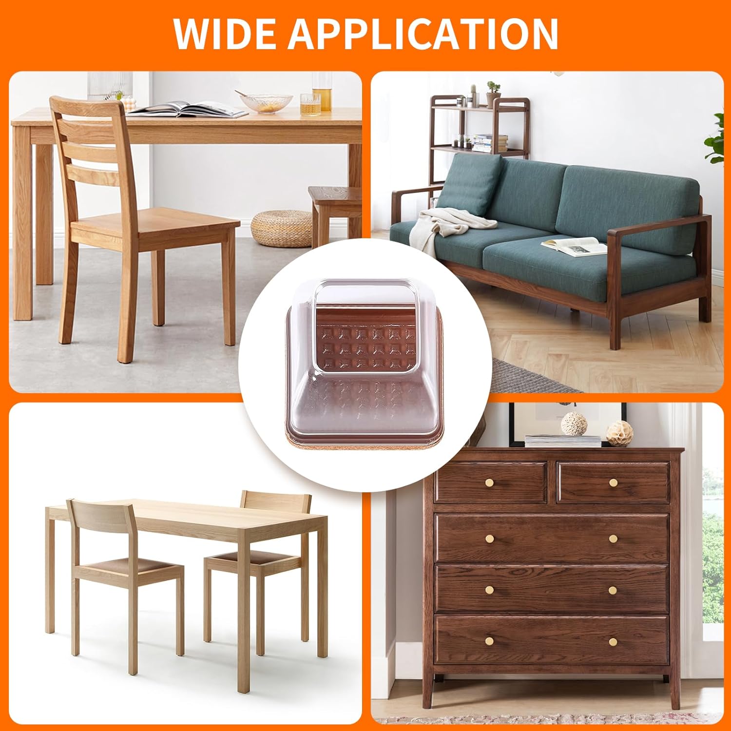 Ezprotekt 24 Pcs Clear Square Chair Leg Floor Protectors with Felt, Silicone Felt Furniture Pads for Hardwood Floor, Dining Table Leg Caps Covers No Scratches and Noise (L Fit: 1" - 1.4")