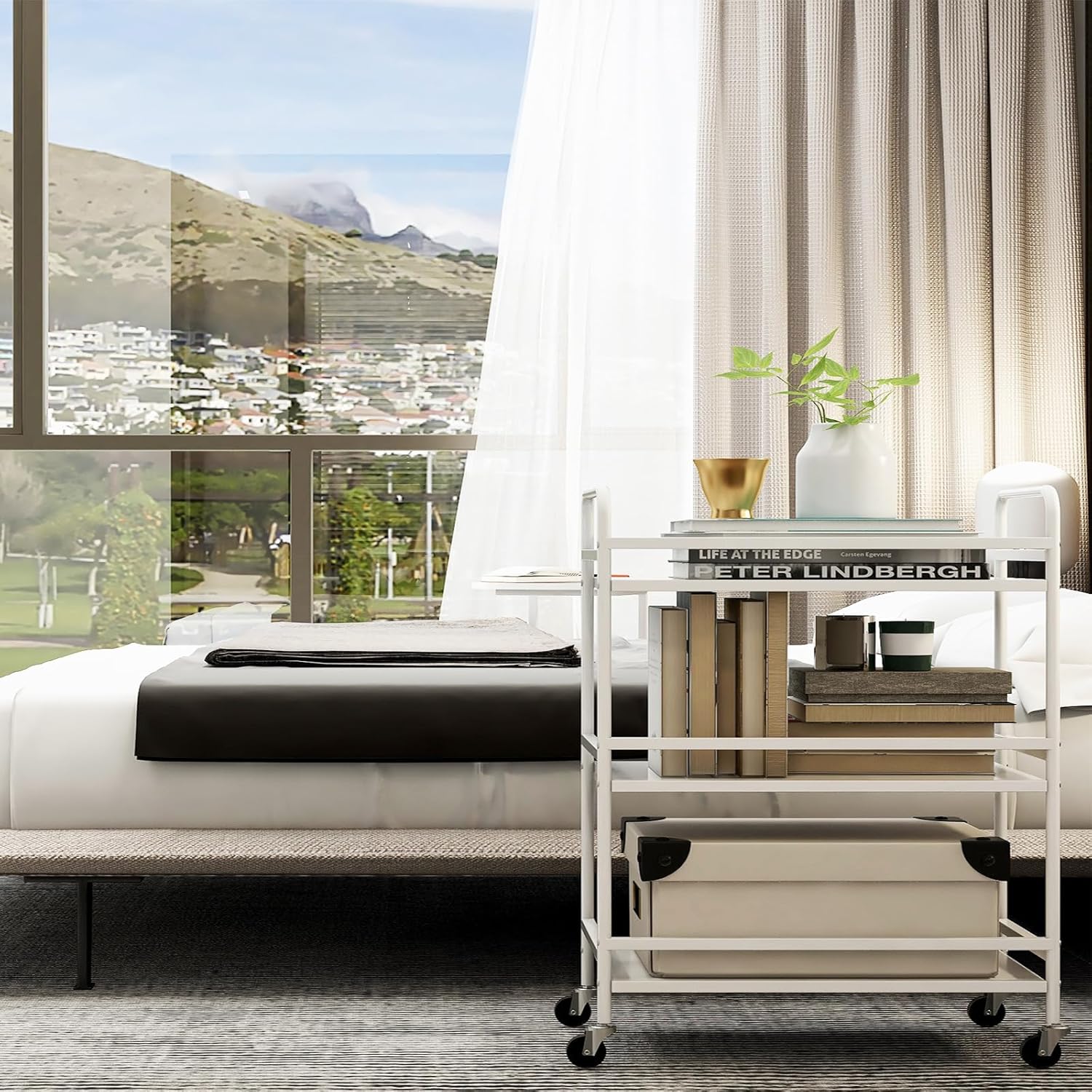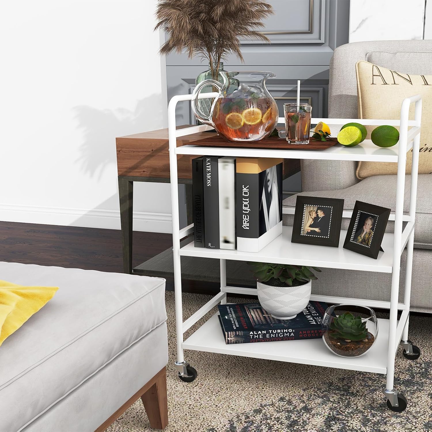 HDANI 3 Tier Metal Utility Multipurpose Rolling Cart, Large Capacity Heavy Duty With Lockable Wheels for Home, Office, Kitchen, Bathroom, Bedroom (White)