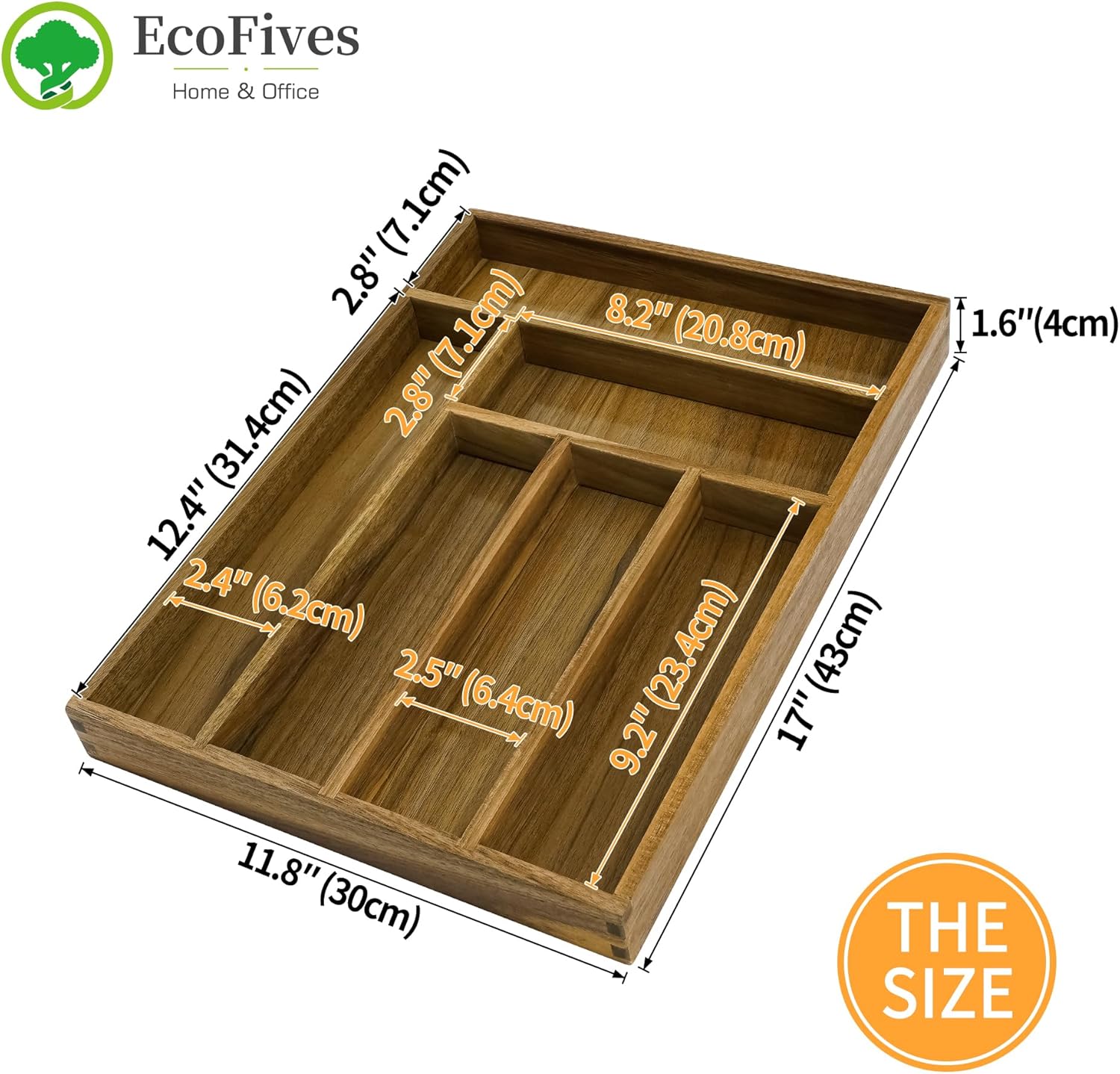 - A Must Have Kitchen-Accessory - Neutral tone and gorgeous wood allow our silverware drawer organizer to blend elegantly with any decor, and it fits most standard sized drawers. Reinforced base and deep compartments ensure extra durability and provide plenty of storage space for drawer organizer that will meet all your needs