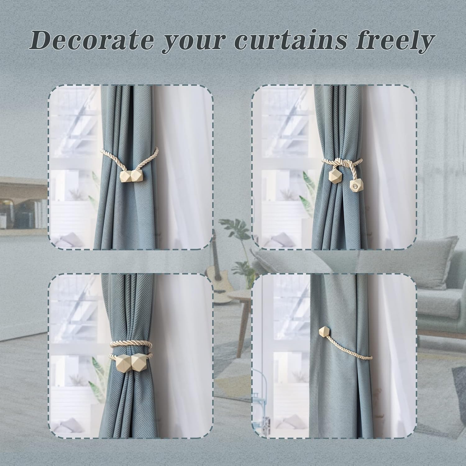 • ๐ŸŒ›[Upgrade Powerful Magnetic] Our magnetic curtain tiebacks magnets use high-end new imported nickel-plated magnets, with strong corrosion resistance and durability, more magnetic than ordinary magnetic curtain tiebacks, and do not rust and not lose color. The rope of curtain tie adopts upgrade thickened solid polyester yarn, which is not only durable, but also not easy to wear or pilling.