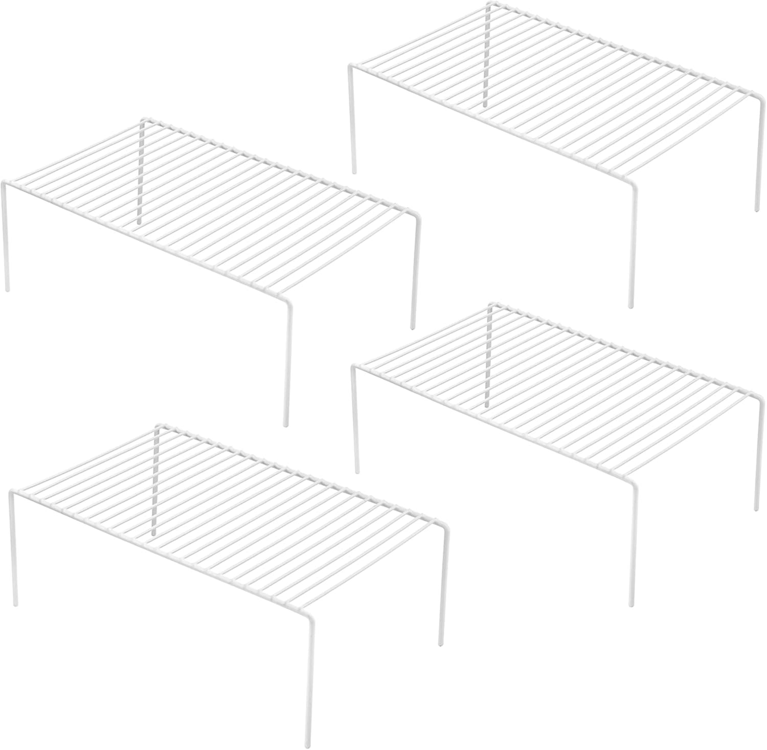 • This set of 4 helper shelves will double your space! Perfect for maximizing storage and organizing in kitchen cupboards, pantries, bathroom cabinets, closets, countertops, under a sink, or anywhere you need extra room.