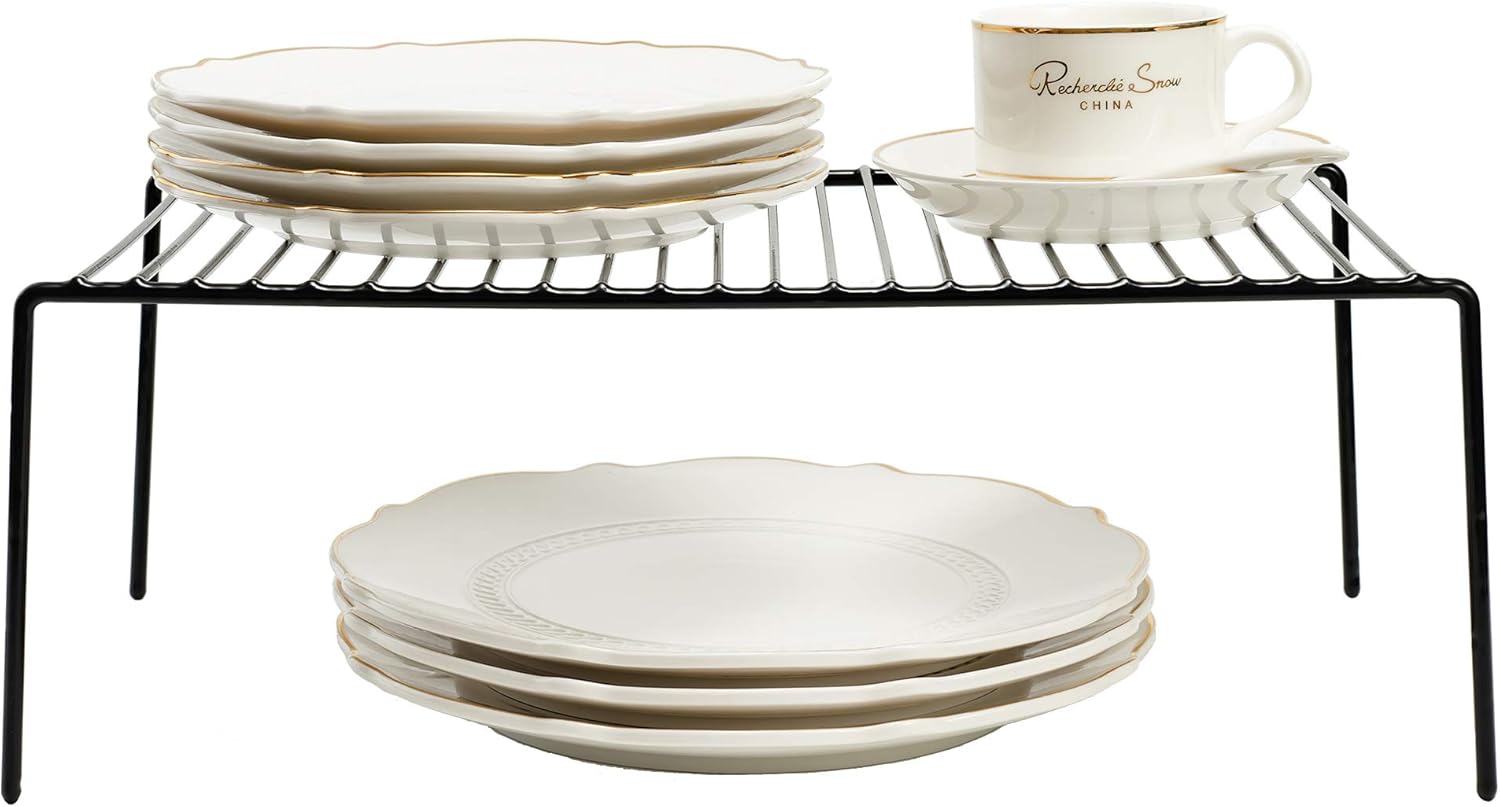 • This set of 4 helper shelves will double your space! Perfect for maximizing storage and organizing in kitchen cupboards, pantries, bathroom cabinets, closets, countertops, under a sink, or anywhere you need extra room.