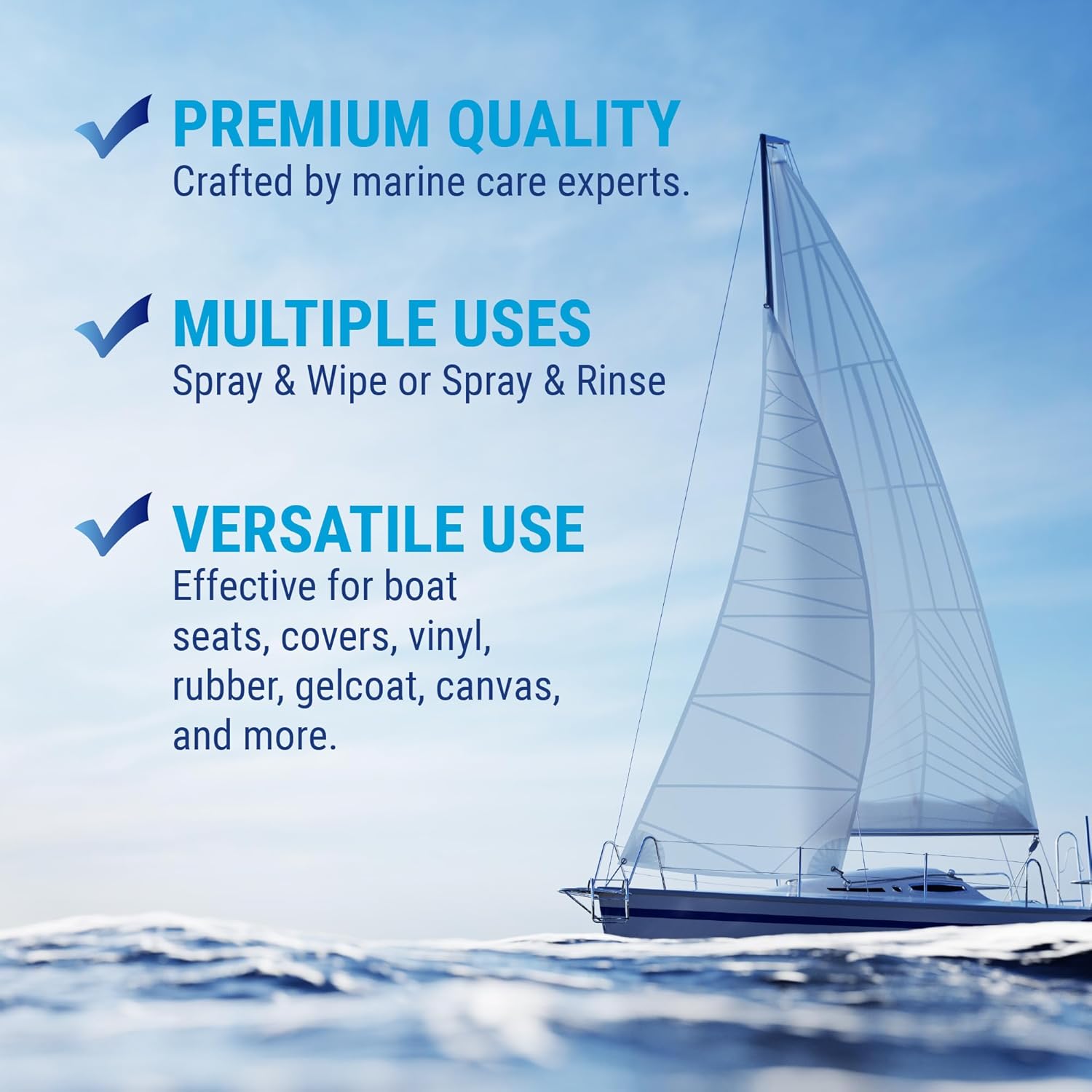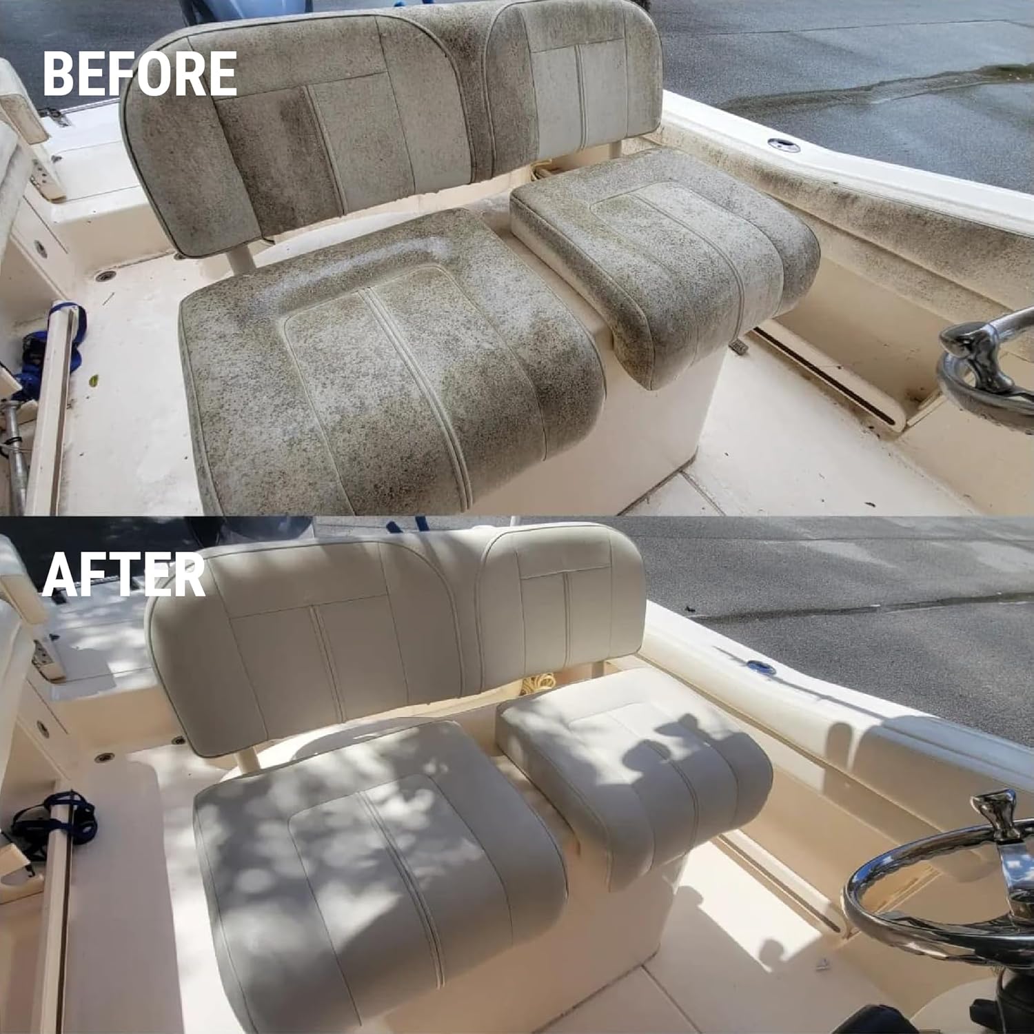 • VERSATILE APPLICATION: Ideal for use on boat interiors, vinyl cushions, fenders, life jackets, sails, etc. Make your vinyl boat seats, covers, cabin, deck, bumpers and more squeaky clean! Just don’t use on fabric or textile.