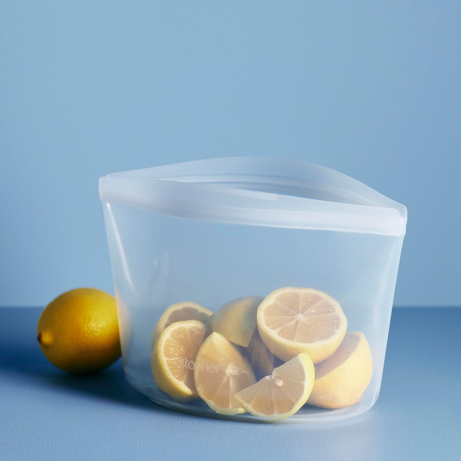 Stasher Premium Silicone Reusable Food Storage Bowl, 6-Cup, Clear, Microwave, Sous Vide, Dishwasher, Oven and Freezer Safe, Travel Container, BPA Free, Leak-free, Eco-friendly
