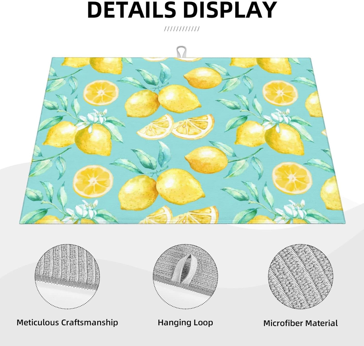 Spring Yellow Lemon Teal Background Microfiber Dish Drying Mat For Kitchen Countertop Xl Absorbent Reversible Drainer Rack Pad Extra Large 18 X 24 Inch