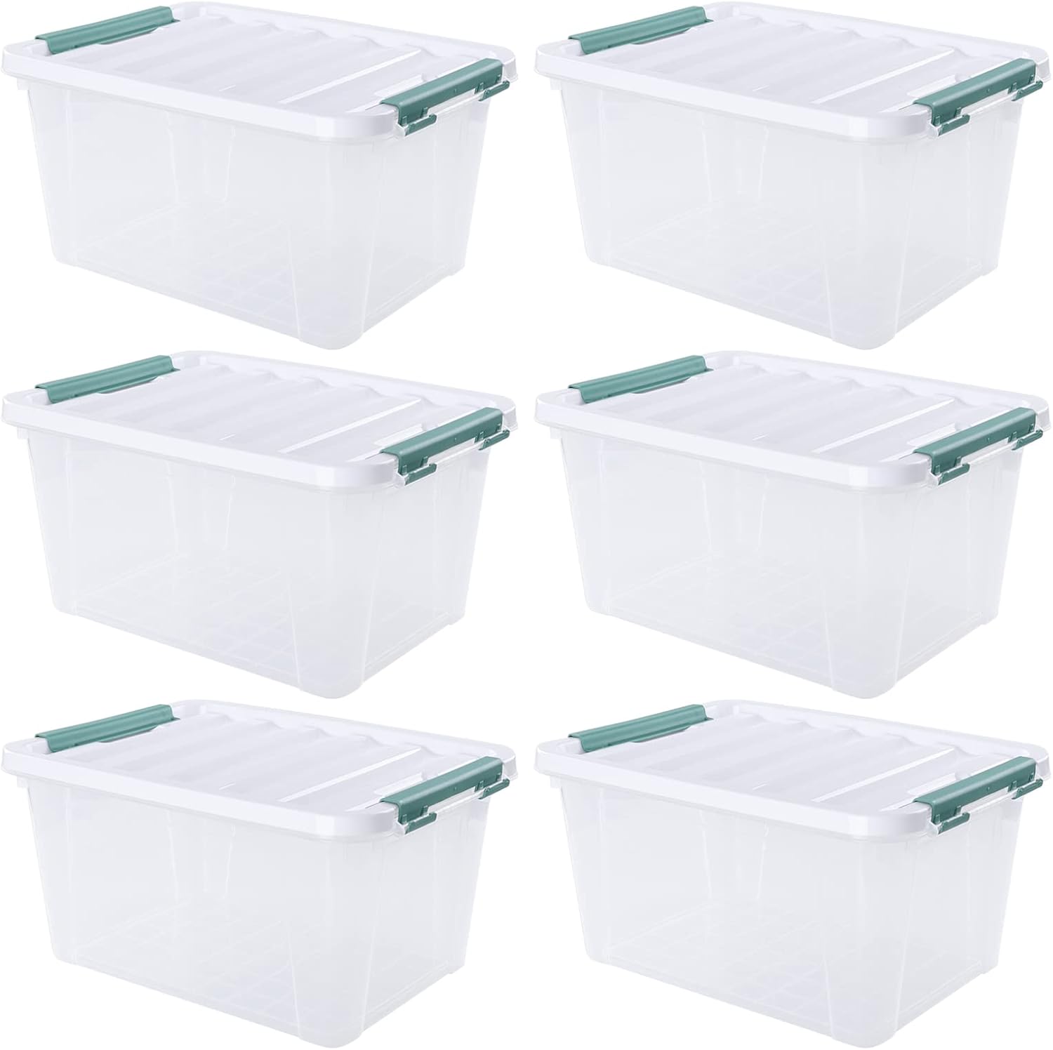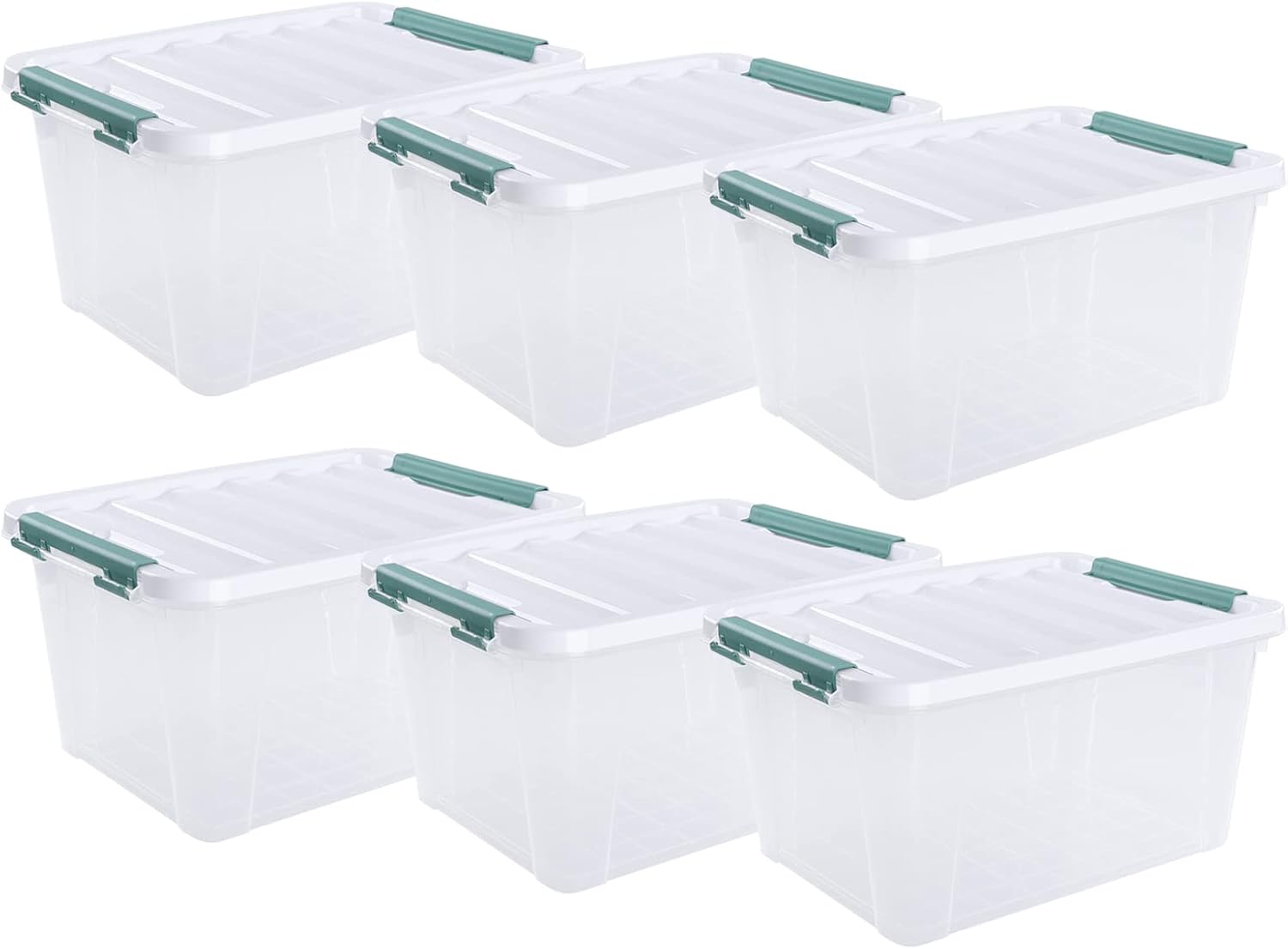 Xyskin 6-Pack 20 Quart Plastic Storage Boxes, Latching Storage Bin Box, Clear