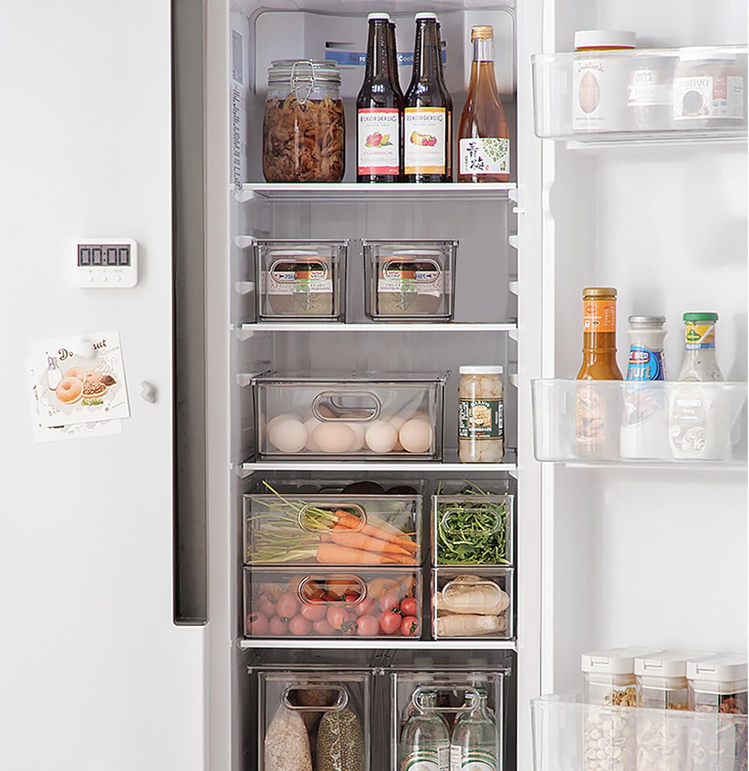 - 【𝐇𝐞𝐚𝐥𝐭𝐡𝐲 𝐚𝐧𝐝 Sturdy 𝐌𝐚𝐭𝐞𝐫𝐢𝐚𝐥】Our refrigerator organizer bins is made of more thicker, more sturdy, non-toxic and tasteless PET materials than most similar products, this fridge organizer bins can resist high temperature and strong low temperature, very sturdy, so they can be used for a long time. Our fridge organizer is made of food-grade PET material without BPA, safe storage of food. Its high transparency design allow you to see clearly each of your groceries at all times to avoid food from going bad. ( Note: product size, 2 medium fridge drawers 13.4x 4.96 x 4.3 inches.).