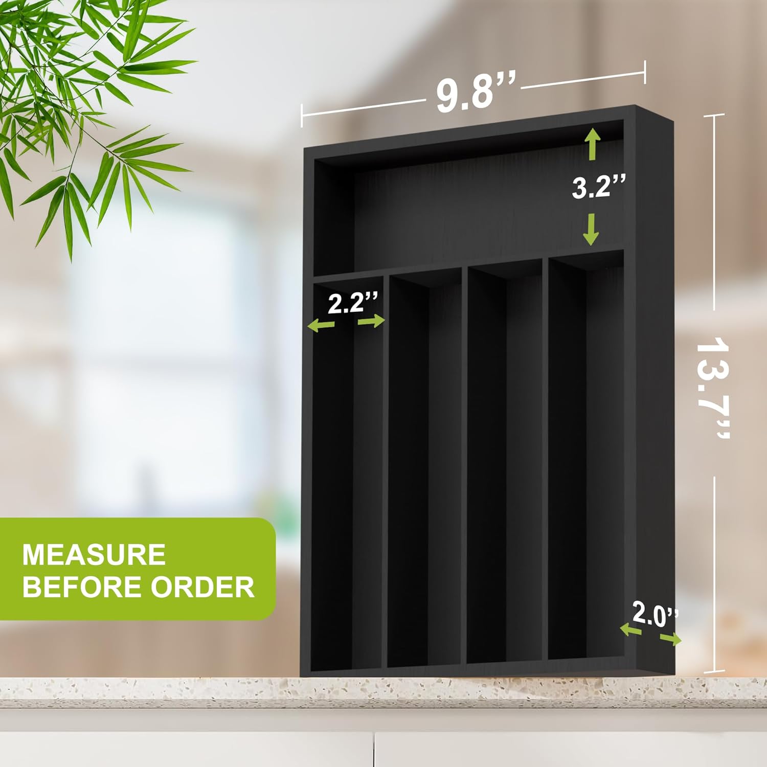- 🎄EFFECTIVE USE OF SPACE - The bamboo cutlery tray is suitable for home and workplace. The tray features an ingenious design to help you organize your flatware, cutlery and kitchen gadgets without creating a mess in the drawer Moreover, our bamboo utensil holder organizer looks orderly, with clear levels, allowing the space to be used rationally. this cutlery tray with black luxury can help you save storage space and improve the aesthetics.