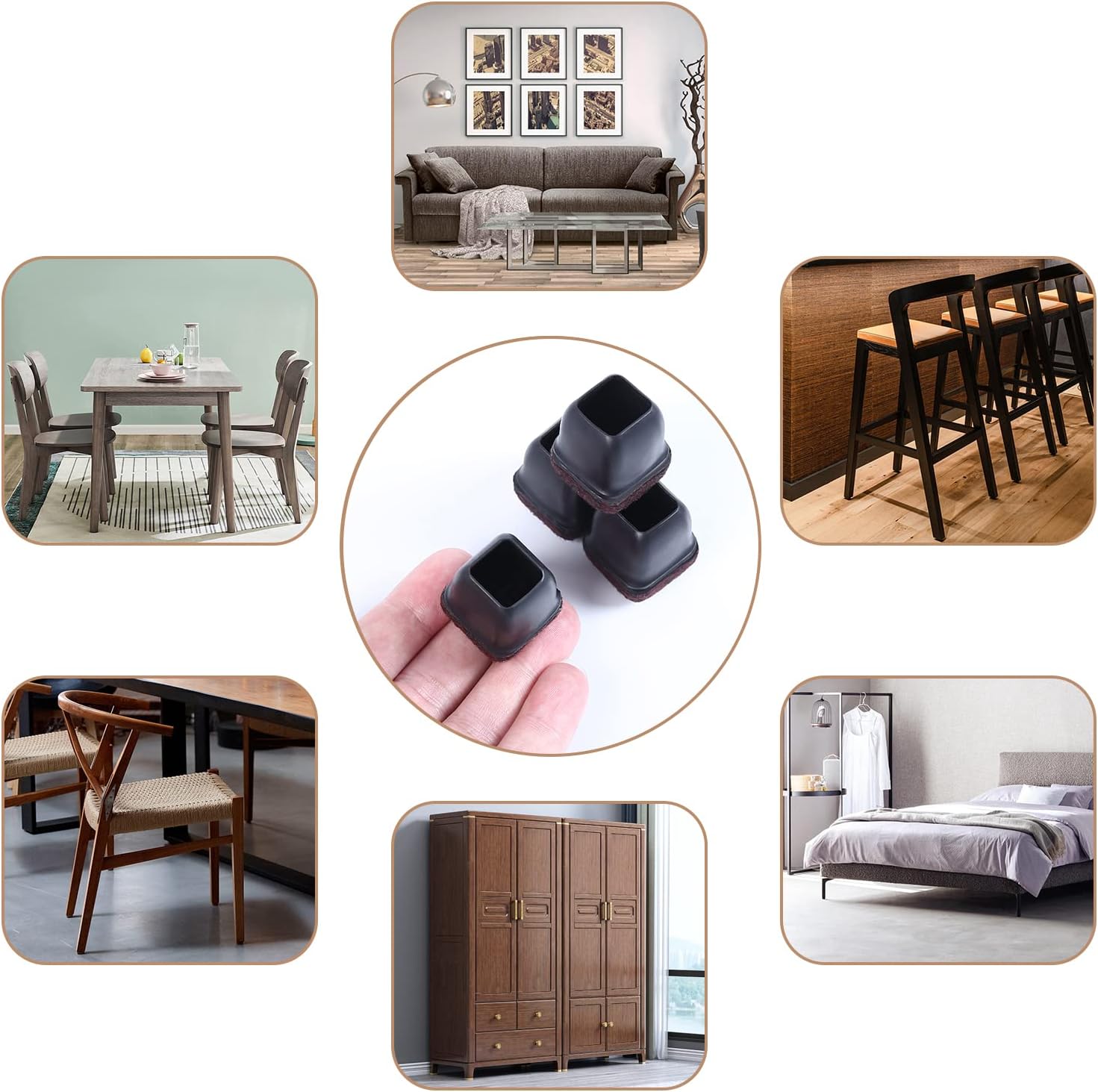 • ☛【Applicable Range】- Square S size fit Square Leg Side Length 0.55" to 0.75" (14-19mm) furniture legs.