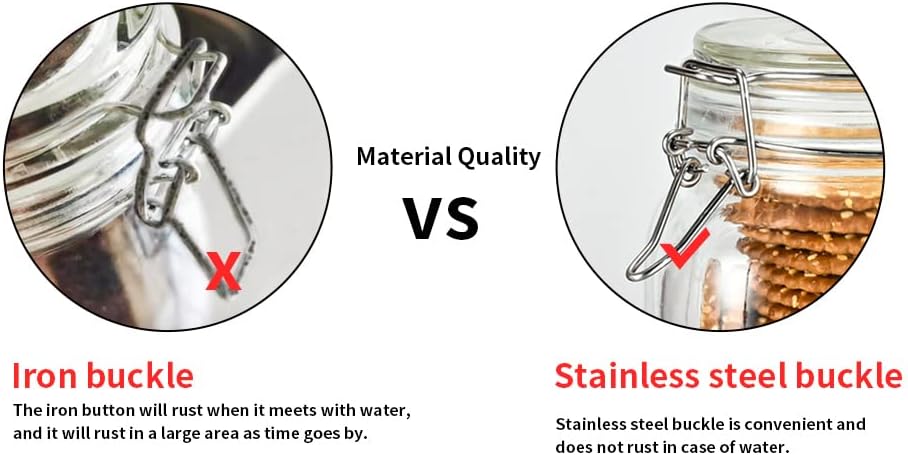• Wide opening----Mason glass can open width can store food, easier to take and take food, easy to clean, Please clean these airtight glass jars by hand only with mild soap and warm water.