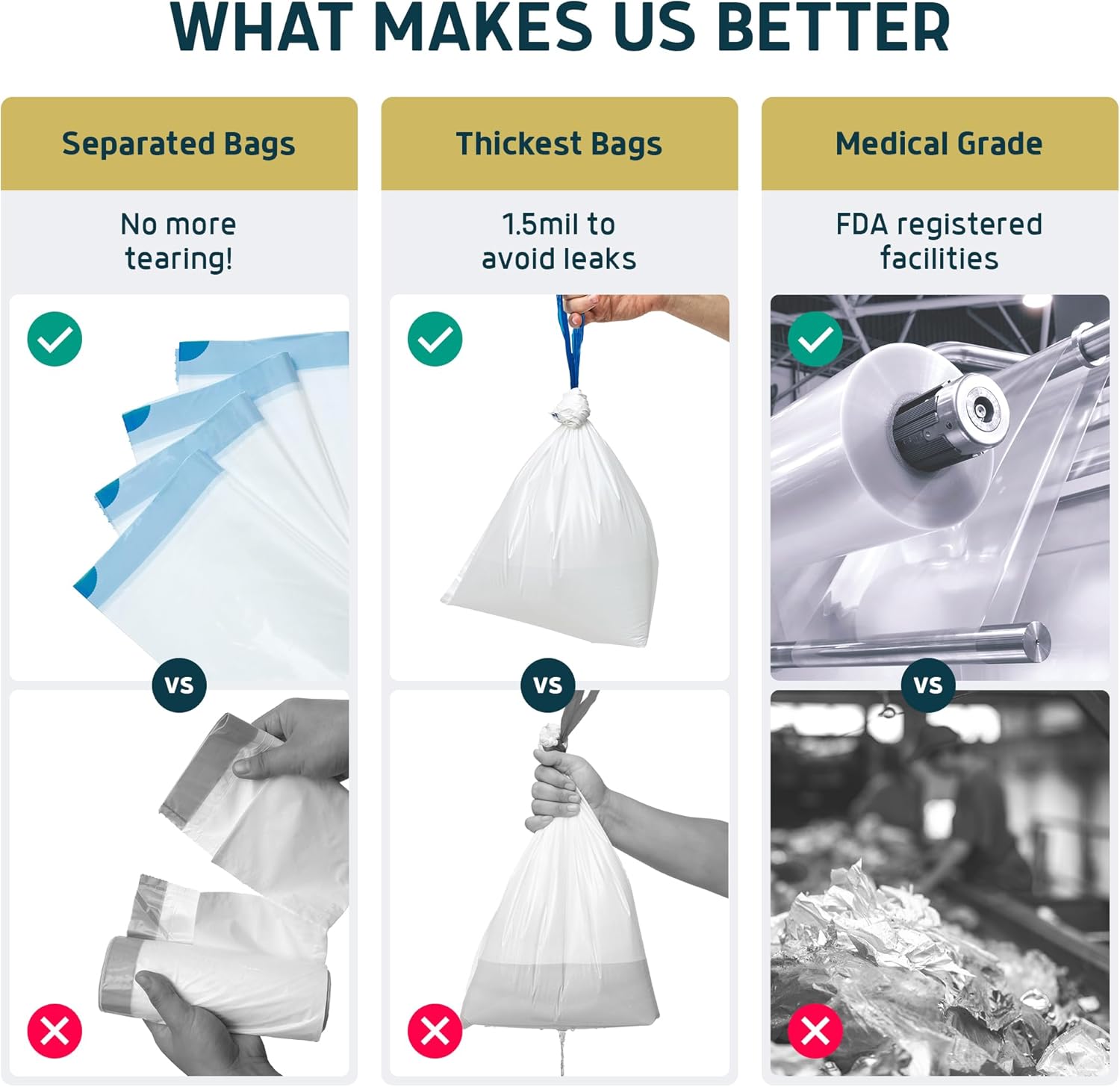 • Ideal For At Home & Commercial Usage: Unlike competitors that come in a roll, our commode liners and jasmine scented pads come in sturdy and durable boxes with already separated bags and pads, making life so much easier for caregivers, family care, and self-care.