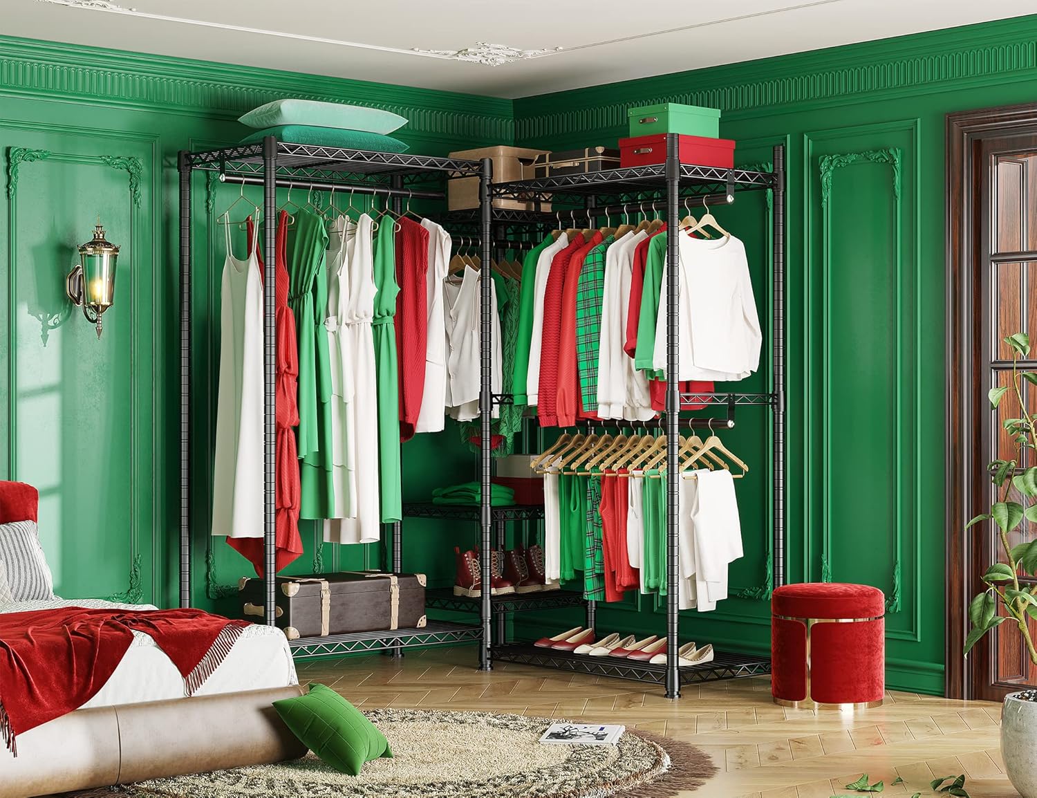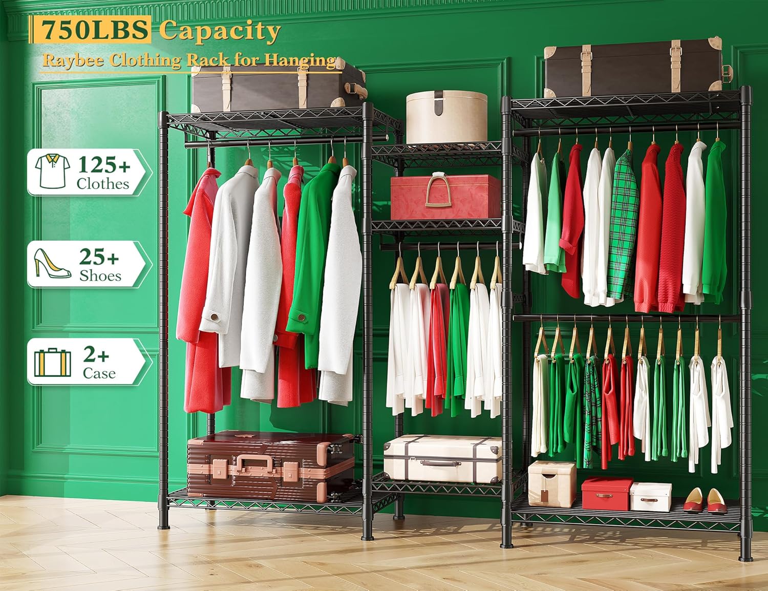 Raybee Clothes Rack, 725 LBS Clothing Rack Adjustable Clothing Racks for Hanging Clothes Metal Wire Garment Racks Sturdy Clothes Rack, 77" H x 70.5" W x 13.8" D, Black