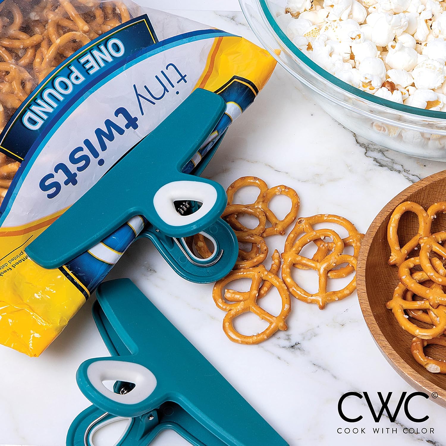 • Bag clips are one of those things you never have enough of, invest in a set of durable, long lasting, soft touch, kid friendly Cook with Color food bag clips and organize your home and office with a colorful set of spring clips.