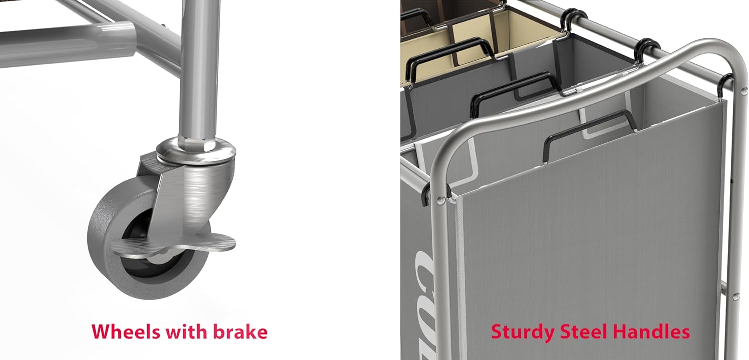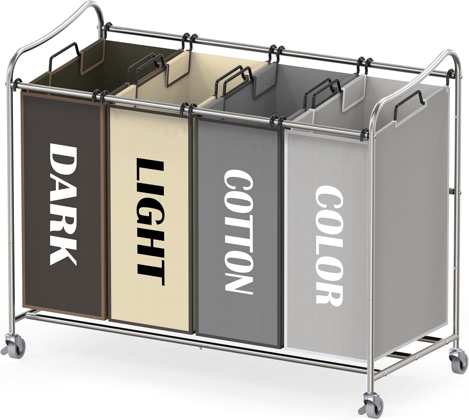 Simple Houseware 4-Bag Heavy Duty Laundry Sorter Rolling Cart, Silver/Assorted