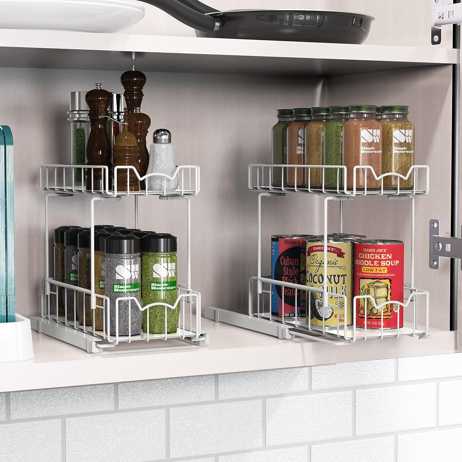Simple Houseware 2-Tier Spice Rack Slide Out Wire Basket Drawer Organizer, White