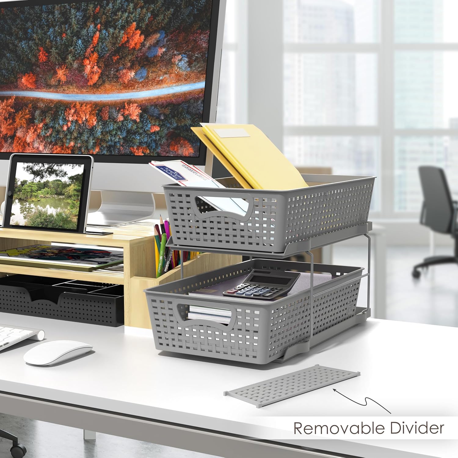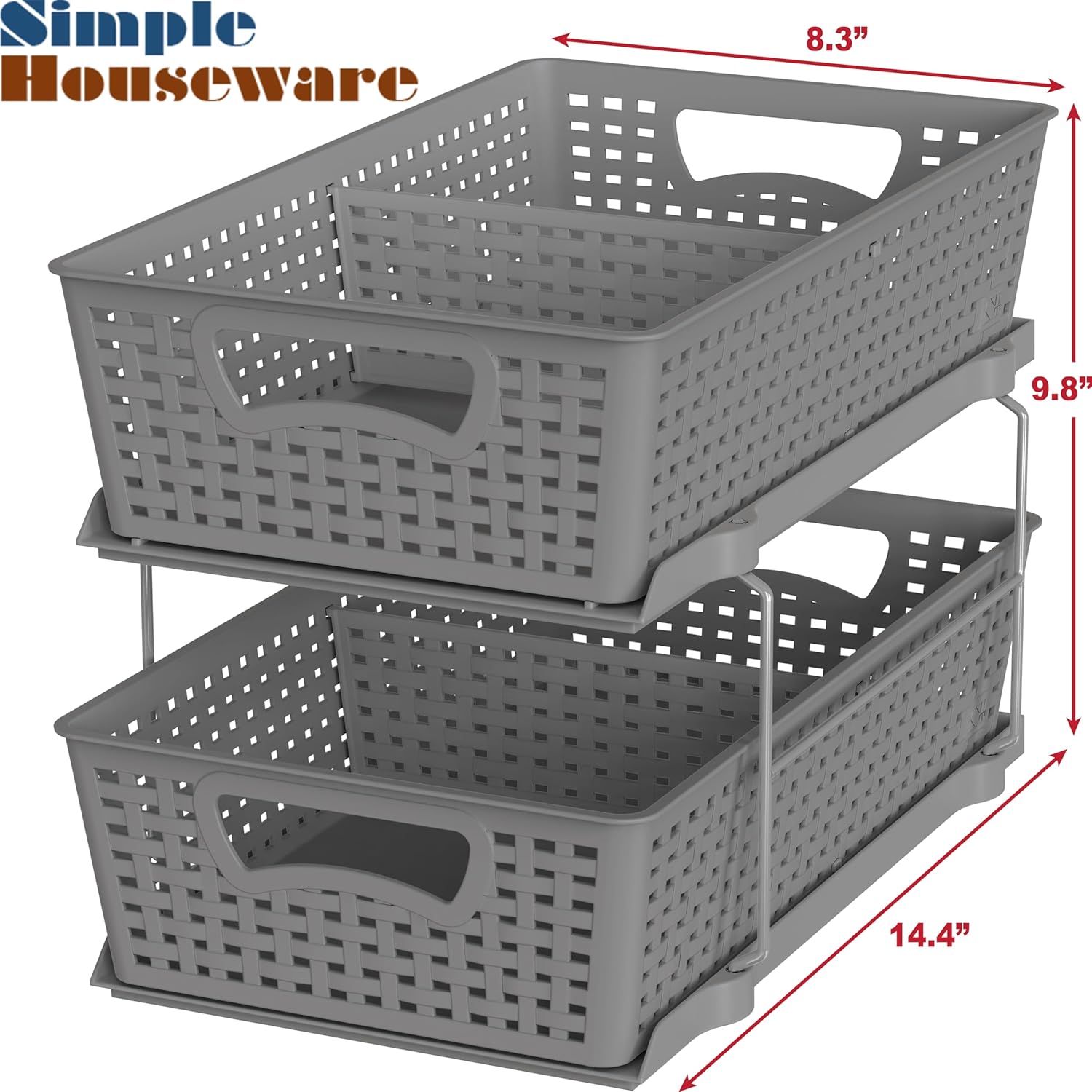 Simple Houseware 2 Tier Bathroom Organizer Tray Pull-Out Sliding Drawer/Under-Sink Storage, Grey