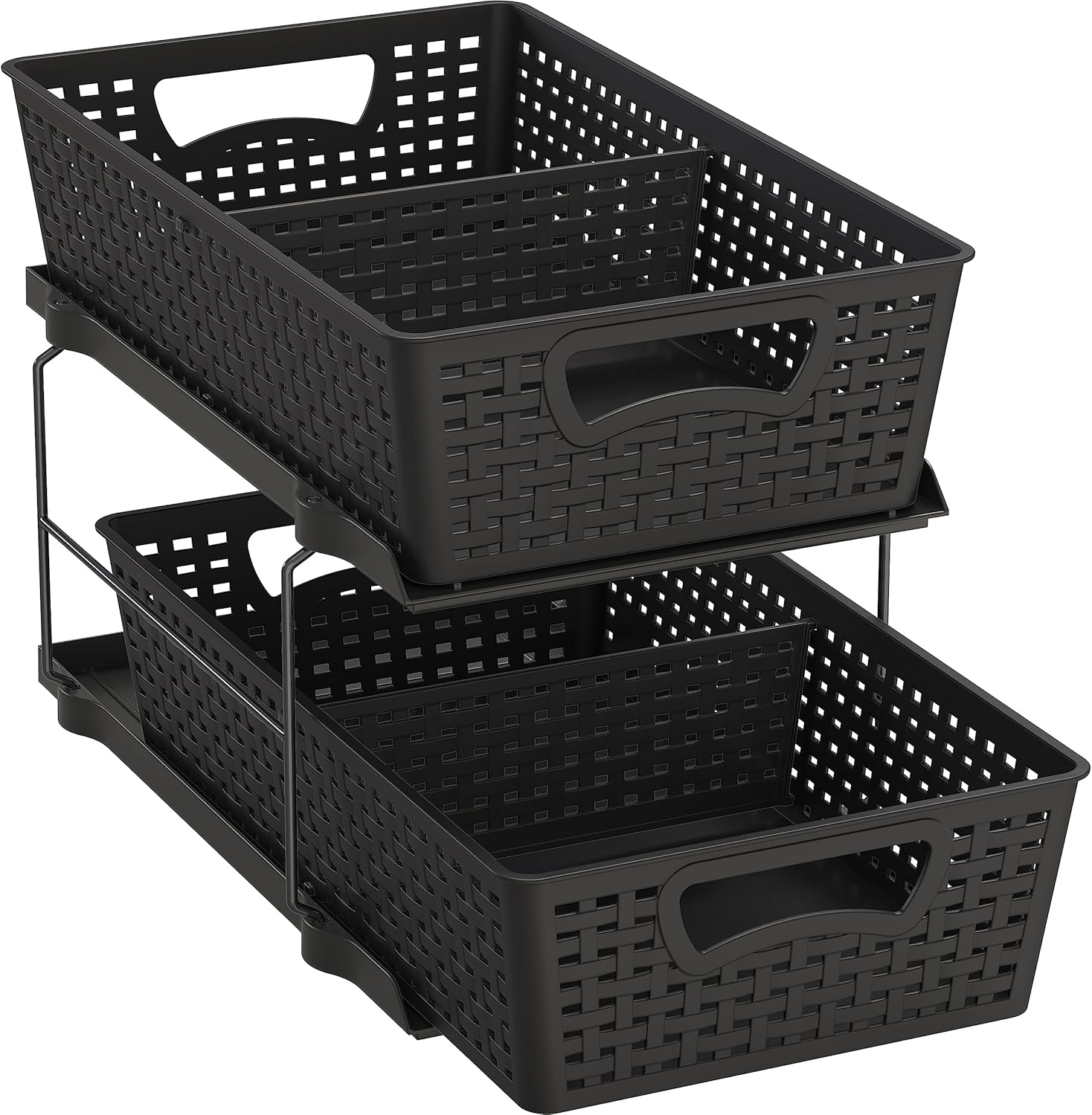 Simple Houseware 2 Tier Bathroom Organizer Tray Pull-Out Sliding Drawer/Under-Sink Storage, Black