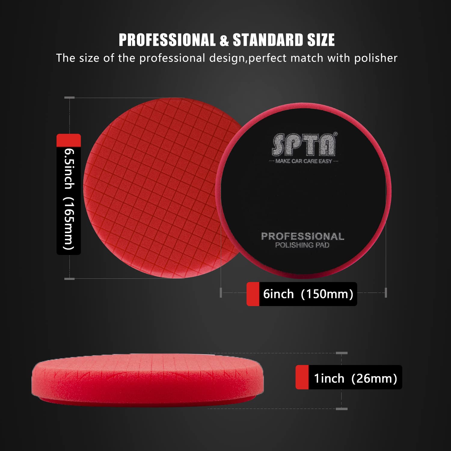 Red Finish Polishing Pads, Buffing Pads, SPTA 1Pc 6.5 Inch Face for 6 Inch 150mm Backing Plate Compound Buffing Sponge Pads for Car Buffer Polisher Compounding, Polishing and Waxing -FPTSS6R