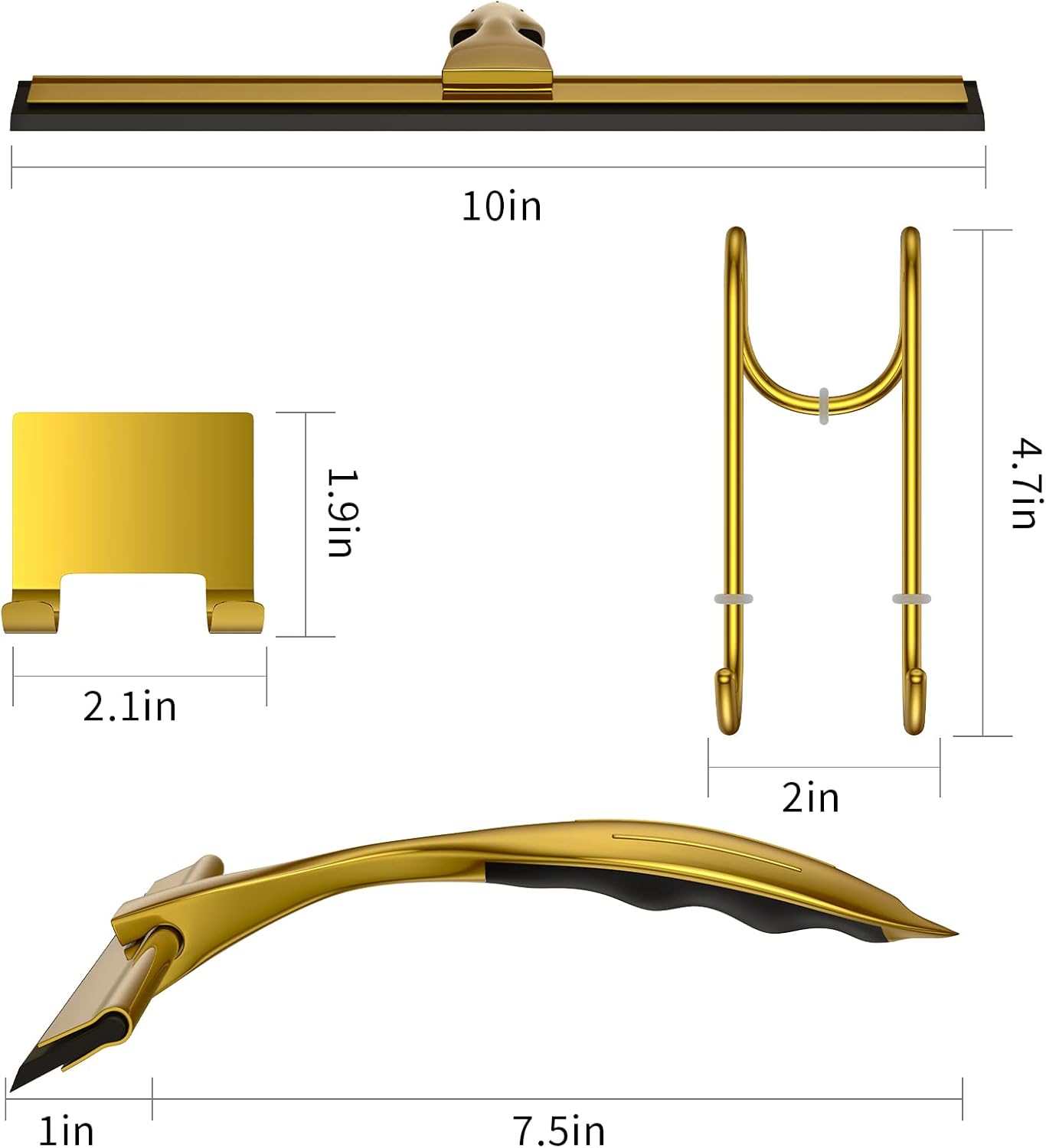 Shower Squeegee Set, 10-Inch Stainless Steel Squeegee for Bathroom, Shower Doors, Mirrors, Tiles, and Car Windows - 100% Streak Free, Includes Shower Door Hook, Adhesive Hook and Spare Silicone Blade
