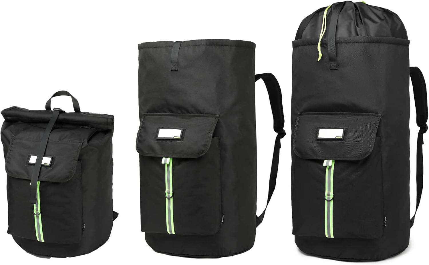 - [Large capacity & multi-pocket design】The laundry bag backpack measures 37.5 ''H*15.5 ''L and weighs 17.3oz. The top of the backpack is retractable and can be expanded up to 38" high. With a maximum capacity of 115 liters, it is larger than the average backpack. With a 11.75 "H*11 "L*2 " front pocket, it can hold laundry detergent, underwear, socks, laundry cards, and other accessories. The multi-pocket design makes it easier to find items by sorting them