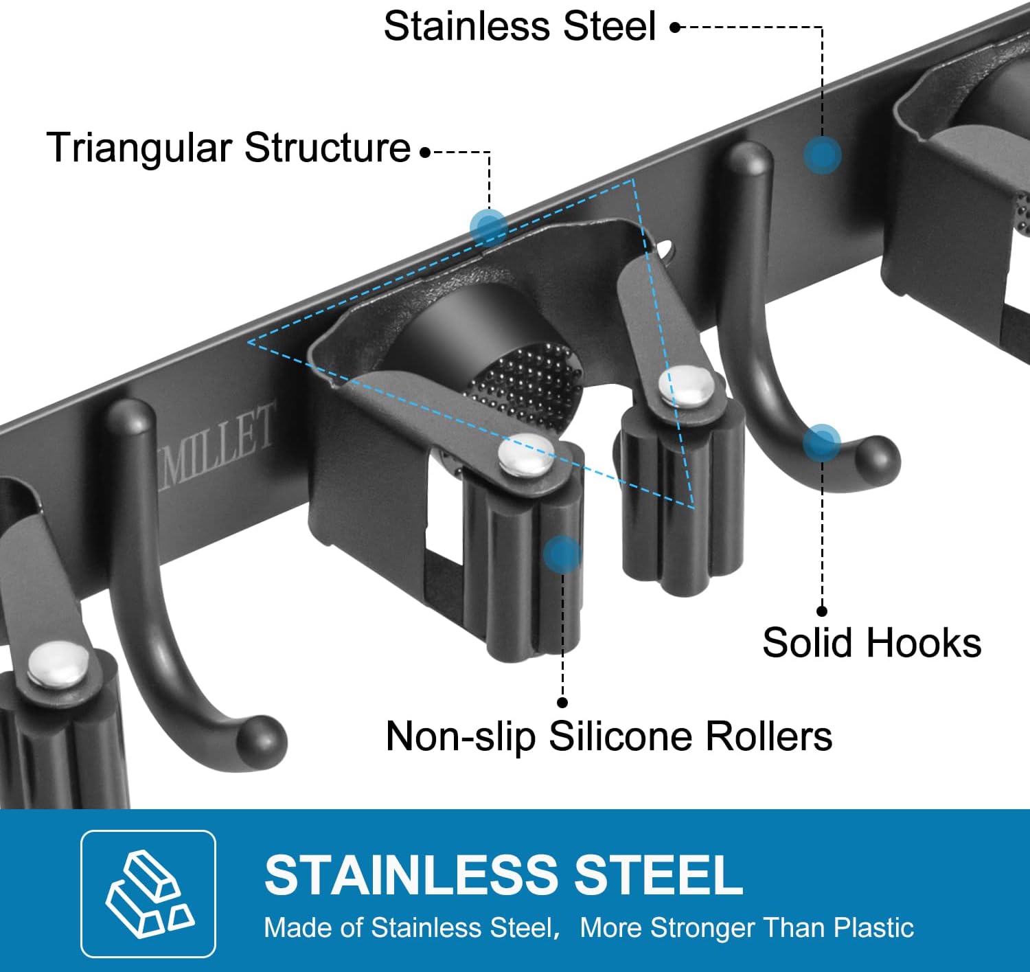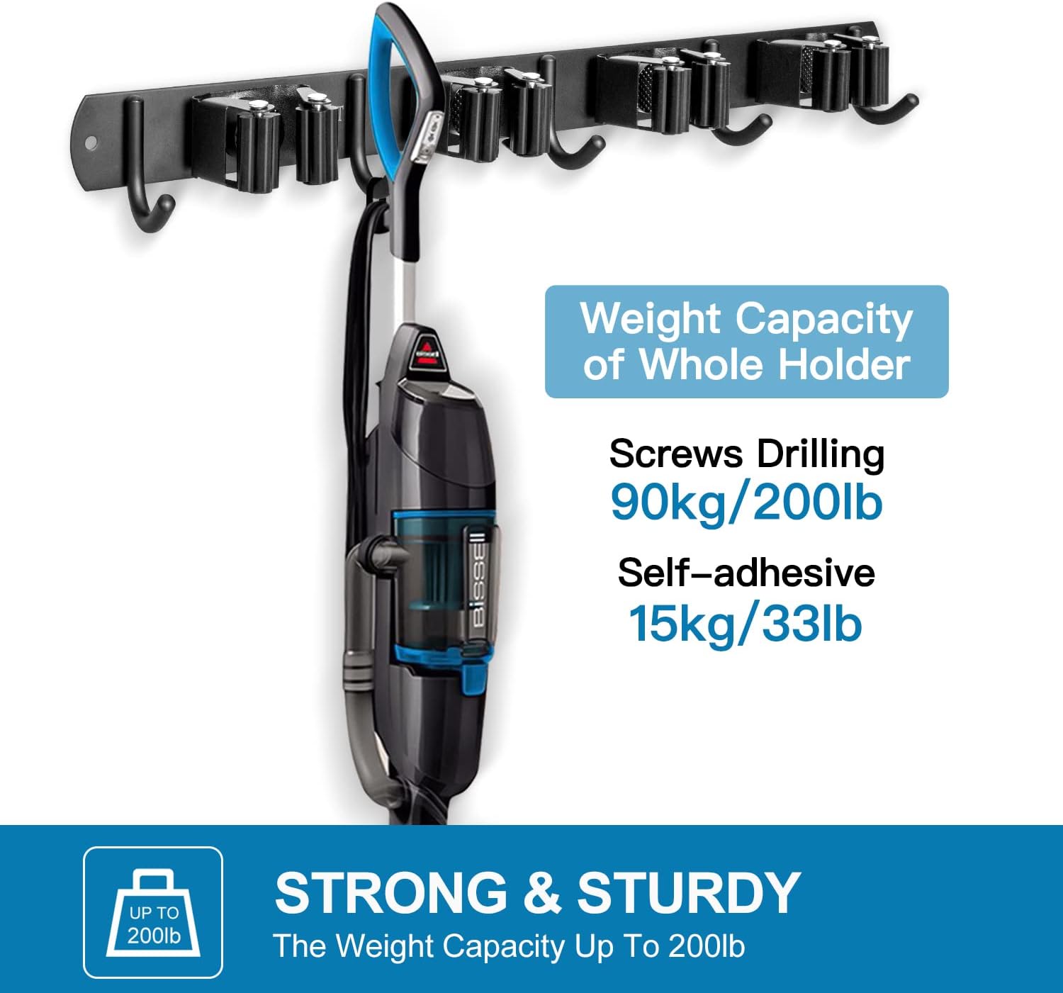 • HEAVY DUTY: Mop holder grip everything tightly and securely without slip. It can hold up to about 9 tools in total. Keep your place cleaned up and keep things organized