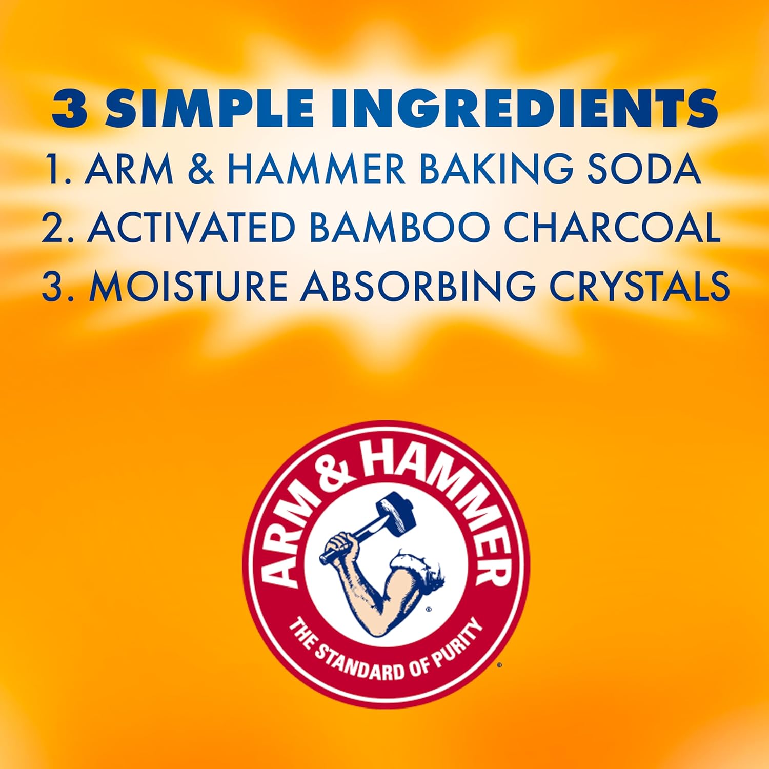 • 3 SIMPLE INGREDIENTS: This humidity absorber and musty odor eliminator is powered by 3 simple ingredients: Arm & Hammer Baking Soda, activated bamboo charcoal and calcium salts.
