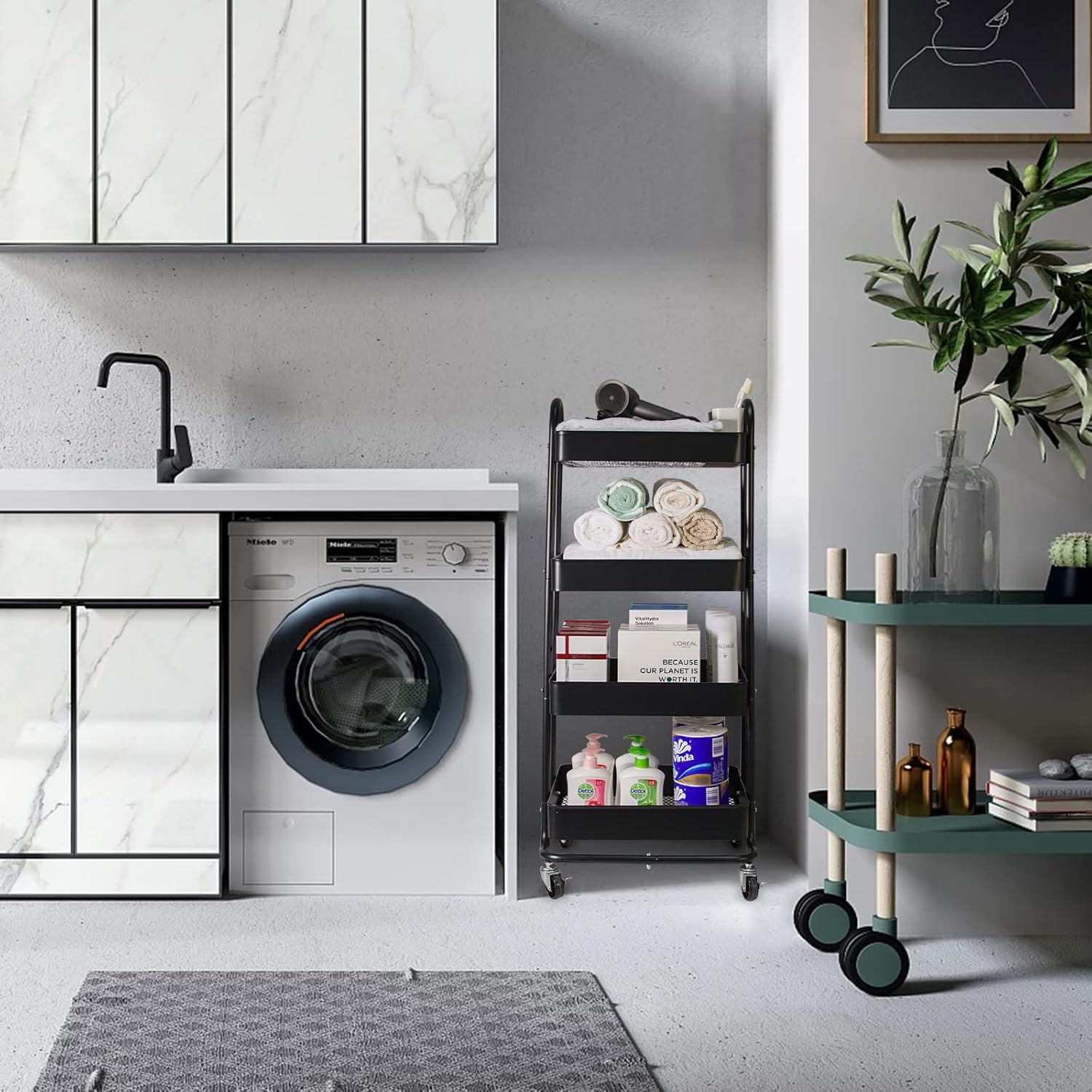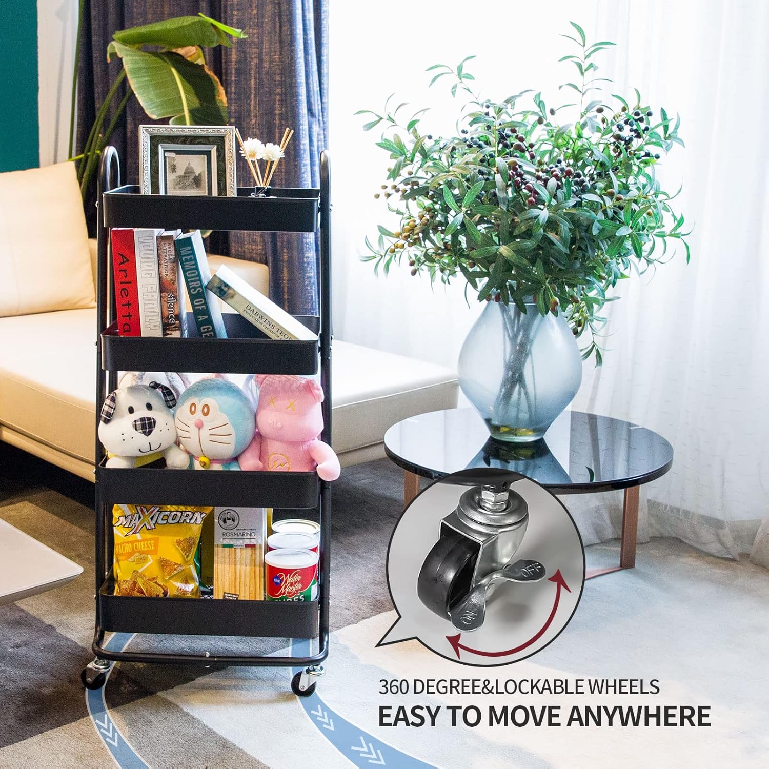 • [Multifunctional Storage Cart] This 4 tier rolling utility cart is easy to store and transport. It can be used as a tools cart, service cart, book cart, art cart, organization rack and more. Suitable for your office, bedroom, kitchen, bathroom, living room, baby room, laundry room, pantry, studio, classroom, and craft areas.