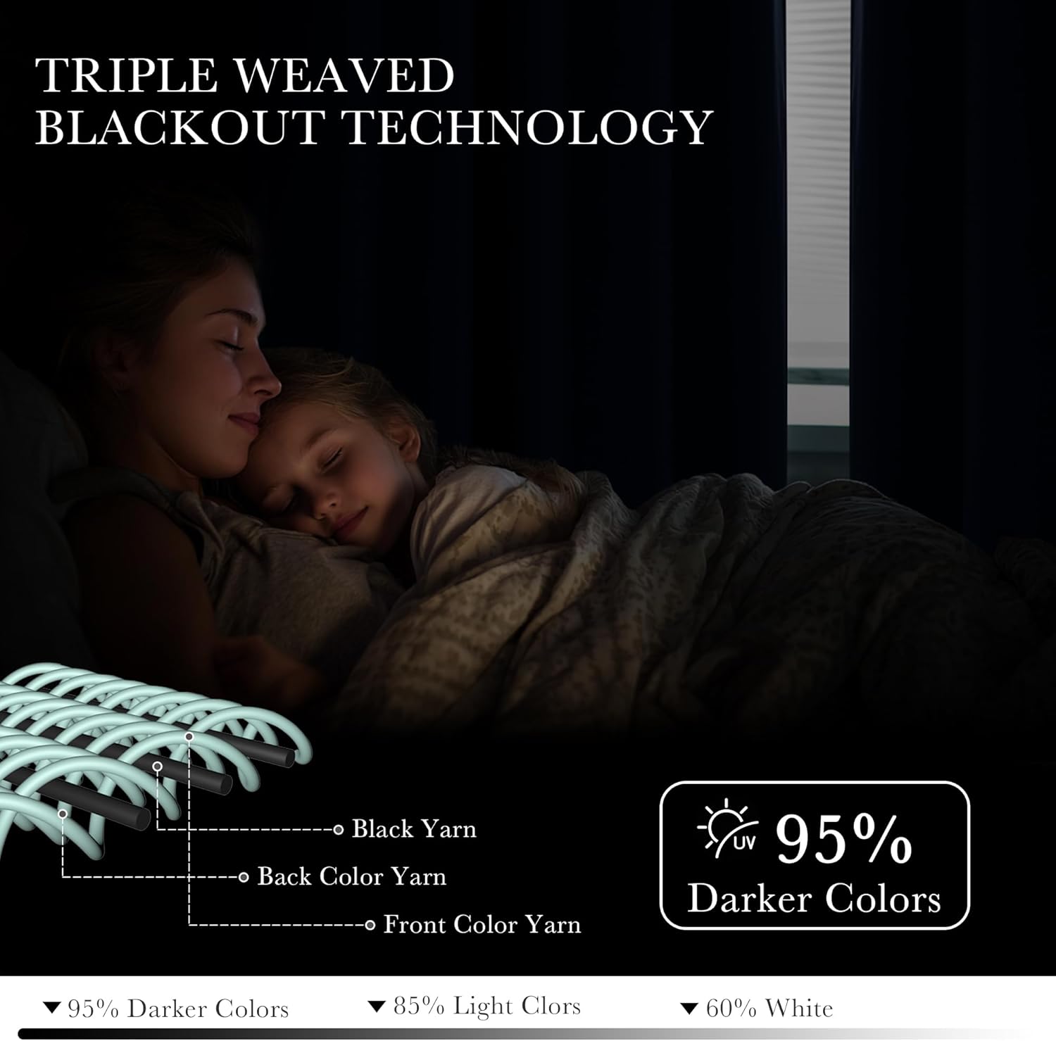 • LIGHT CONTROL - Adopt the triple weave technology, the heavy and soft fabric can prevent harsh sunlight and UV ray from passing through the windows. Dark color works better than the light one