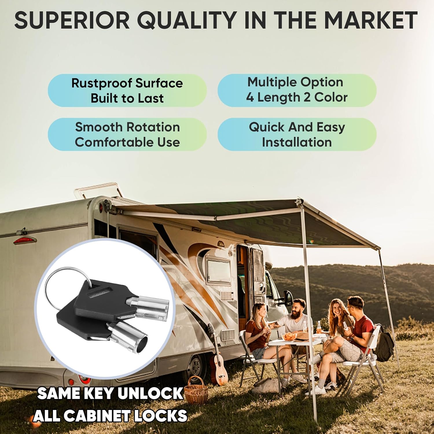 • [PREMIUM QUALITY HARDWARE] The RV Lock Cabinet Locks are made of premium metal and more secure tubular cam lock keys, along with waterproofing features. Keep your valuables safe and protected, and built to last in various weather conditions.