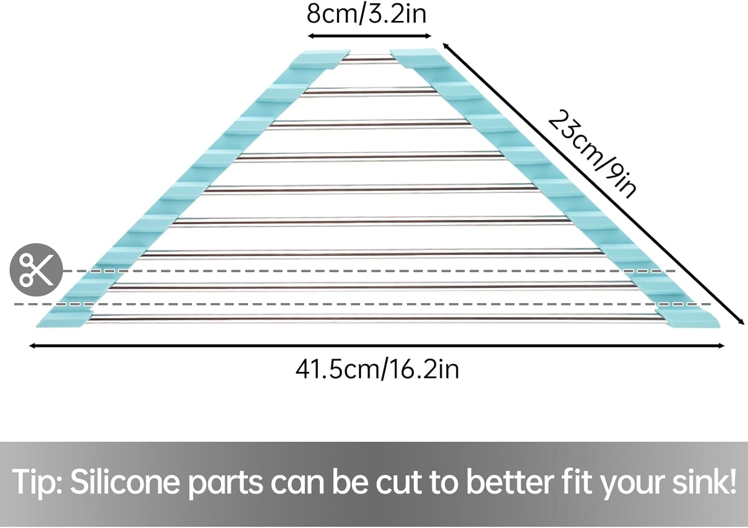 - ✔️【Space Saving】This over-sink dish drying rack takes up little space and the foldable design allows you to quickly roll it up for easy storage and make your kitchen look less cluttered. It is the best cutlery drainer for your kitchen and can replace bulky dish racks and colanders. Suitable for most standard sinks and drawers. Please kindly check your sink size before purchasing.