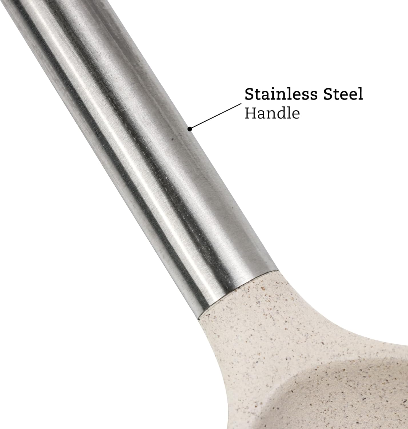• STAINLESS STEEL HANDLES: Sturdy handle made of durable, corrosion resistant stainless steel that won’t rust so you can count on it to last; Comes with handy slot in handle for easy hang storage if preferred; Trendy cream color will fit nicely with any kitchen decor